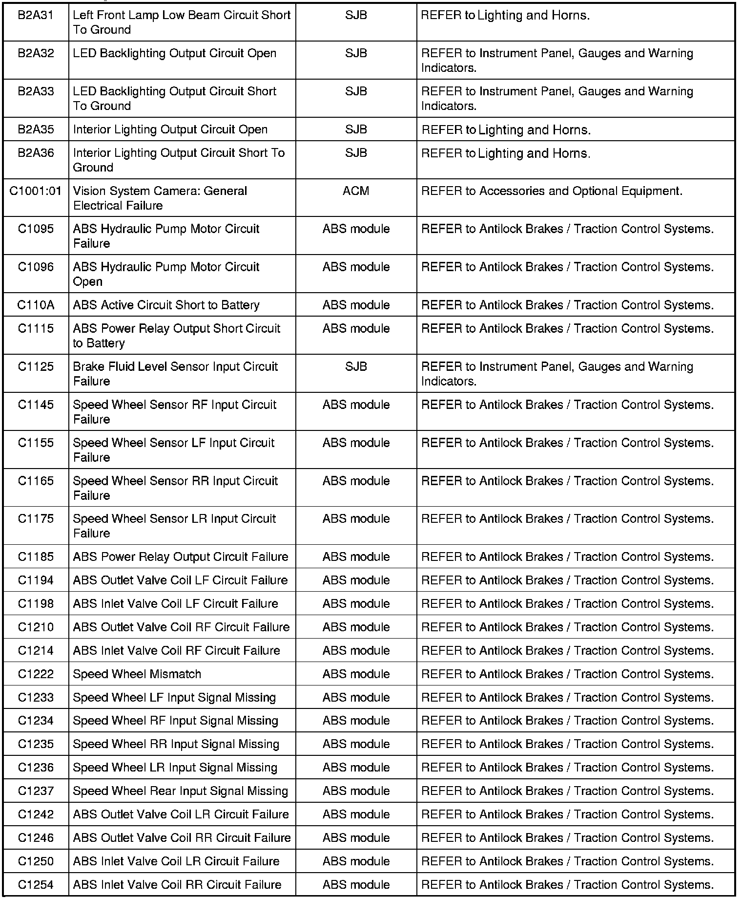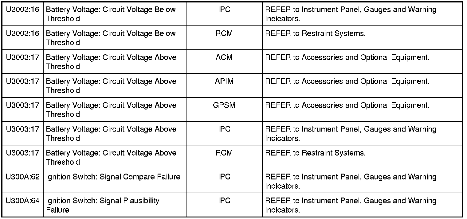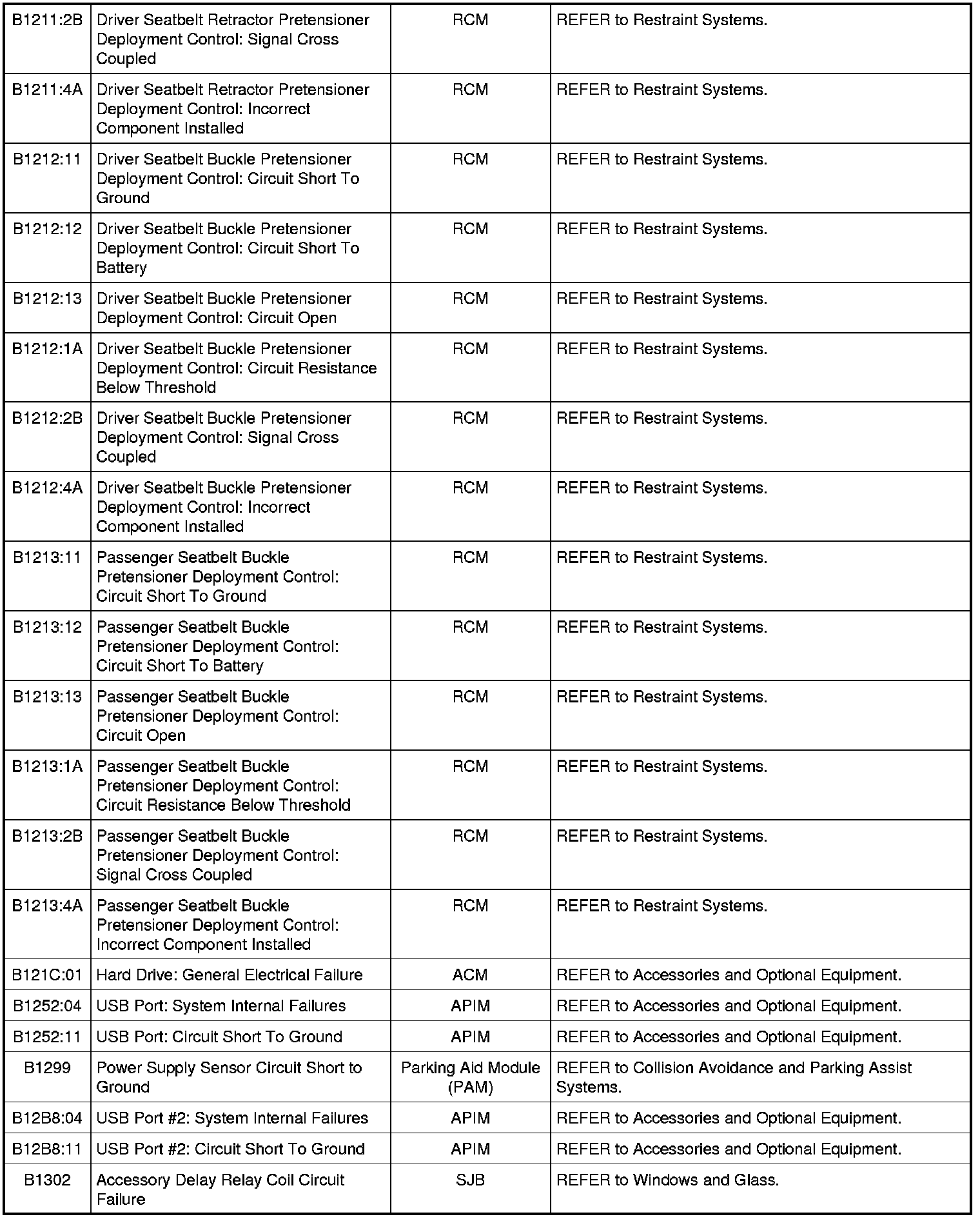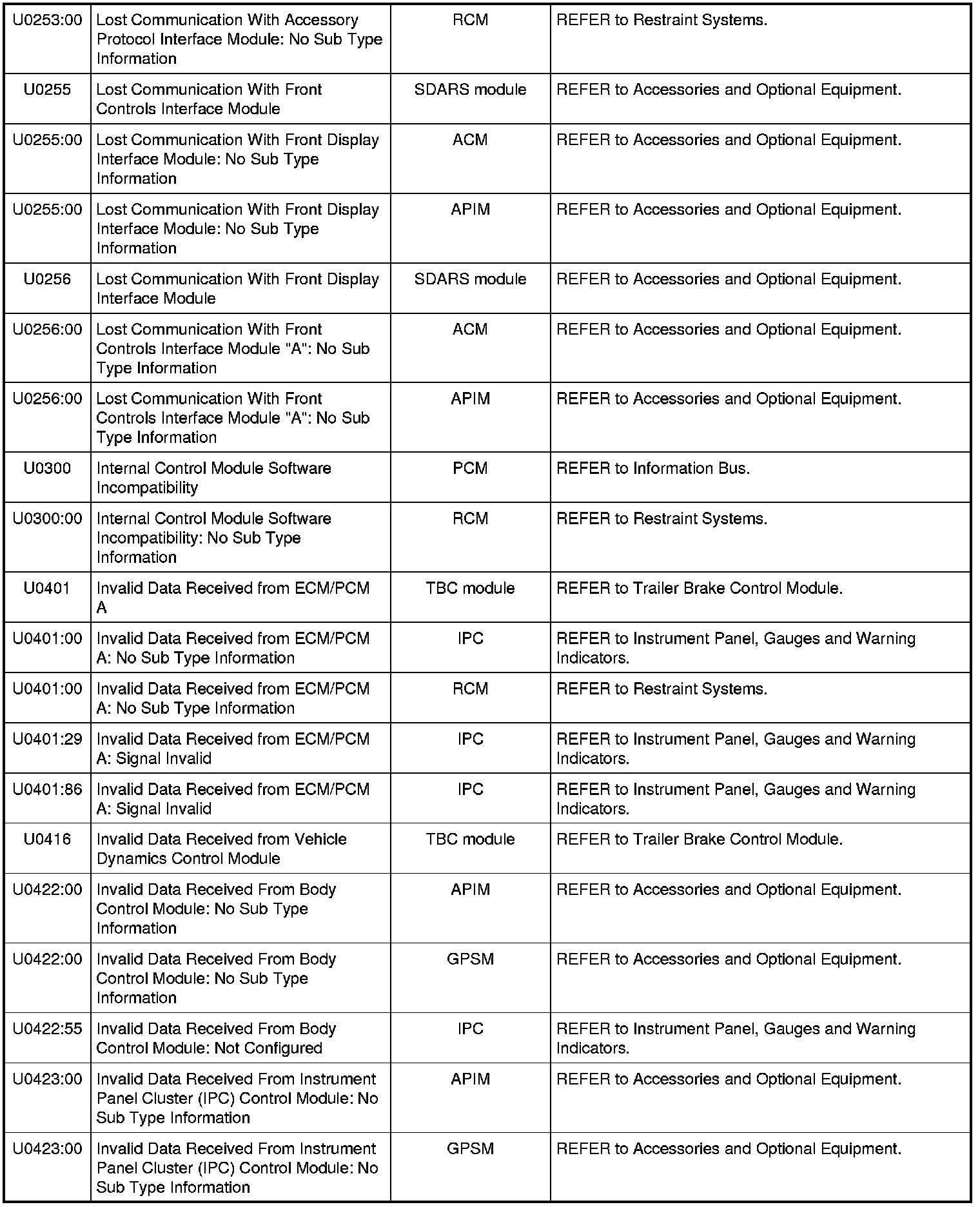Home >> Ford >> 2010 >> E 150 V8-4.6L >> Repair and Diagnosis >> Body and Frame >> Body Control Systems >> Testing and Inspection >> Diagnostic Trouble Code Descriptions >> Diagnostic Trouble Code (DTC) Chart