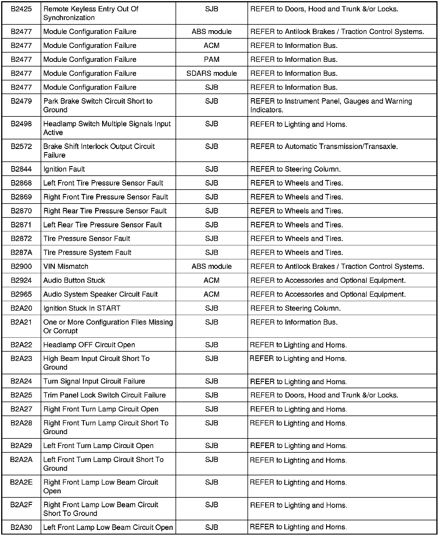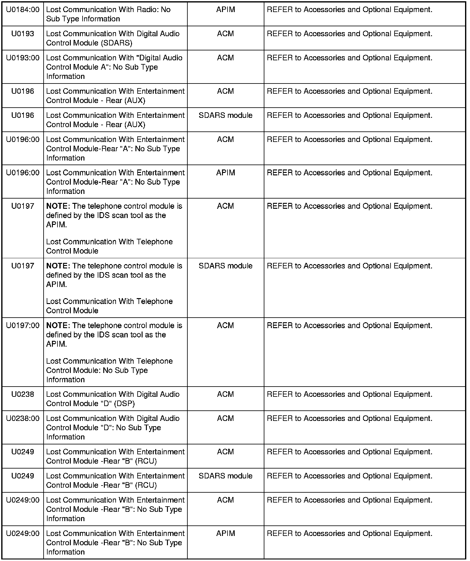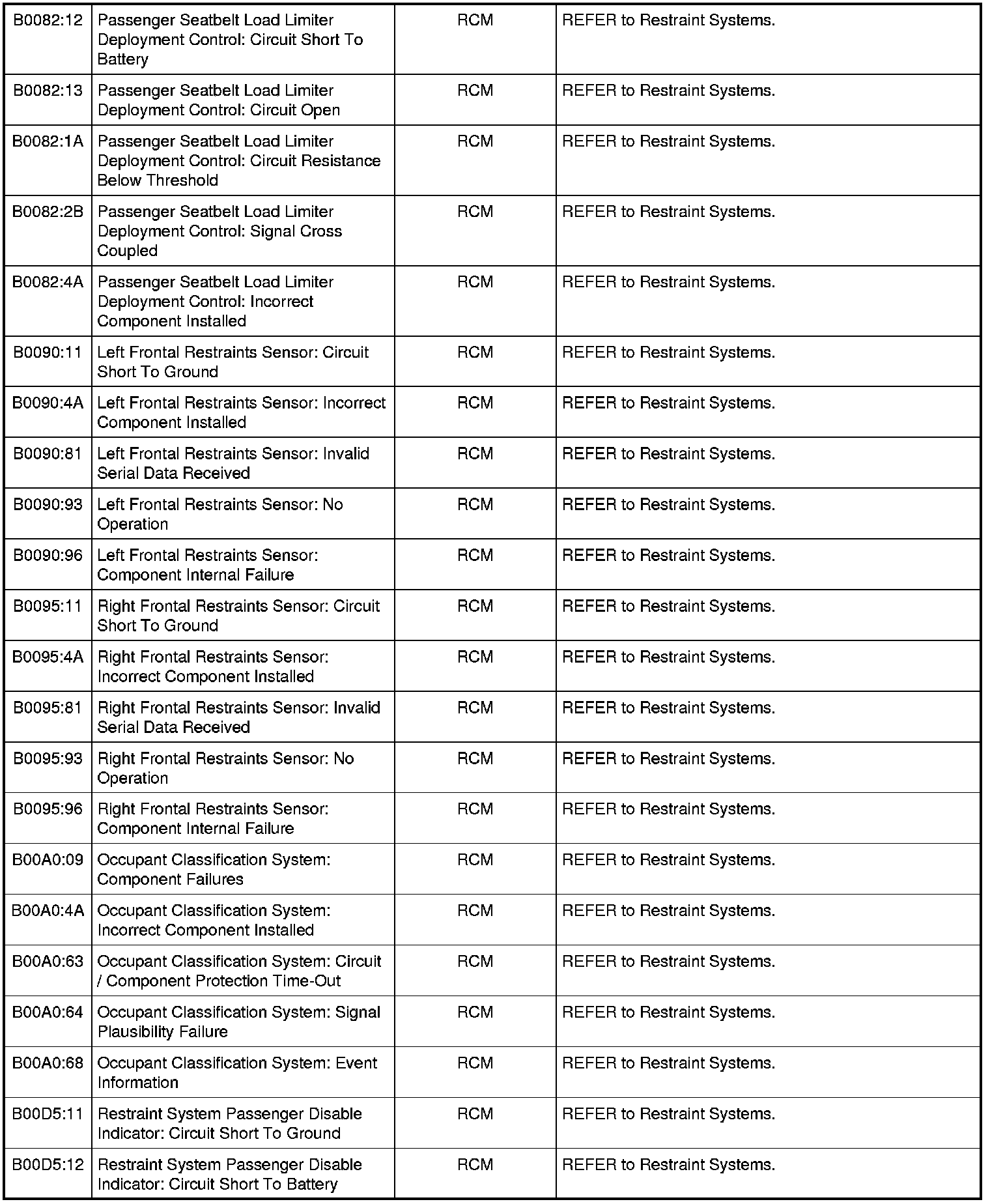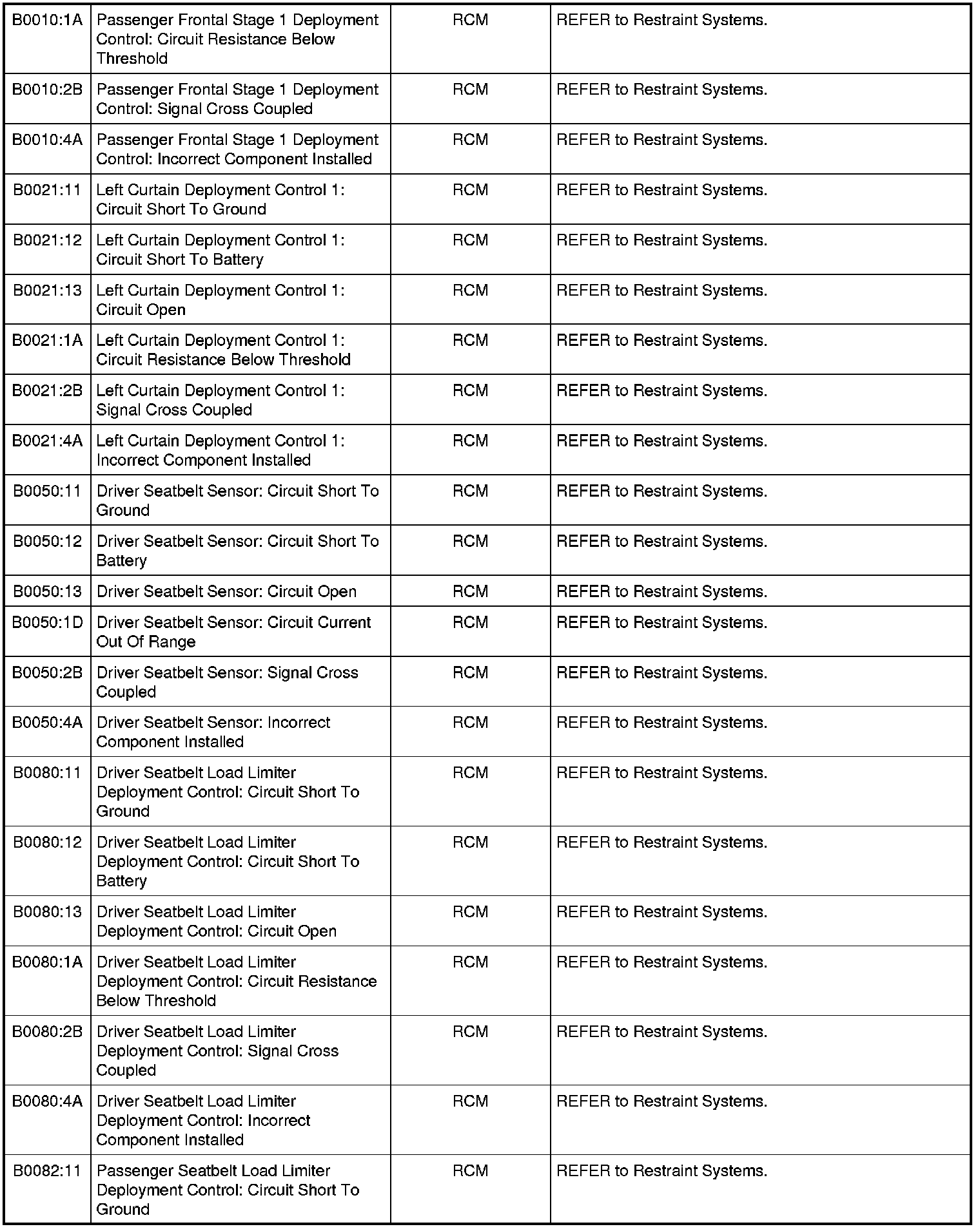 Home >> Ford >> 2010 >> E 150 V8-4.6L >> Repair and Diagnosis >> Body and Frame >> Body Control Systems >> Testing and Inspection >> Diagnostic Trouble Code Descriptions >> Diagnostic Trouble Code (DTC) Chart