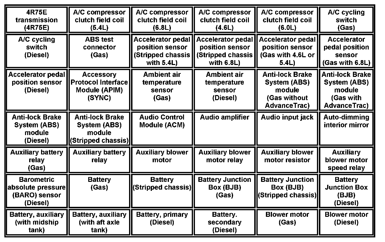 A-Z Component List