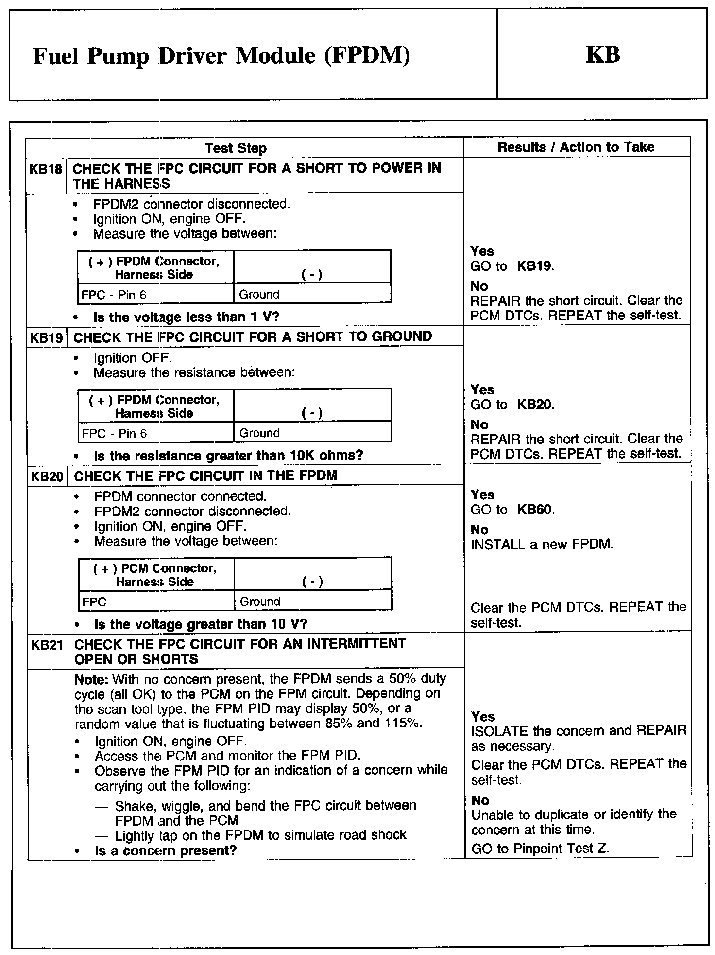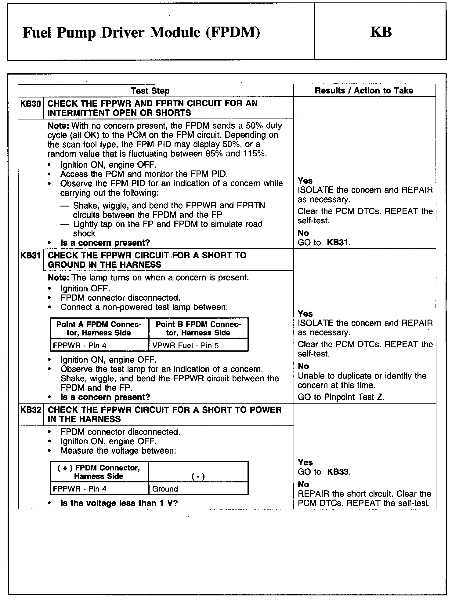 PINPOINT TEST KB: FUEL PUMP DRIVER MODULE (FPDM)