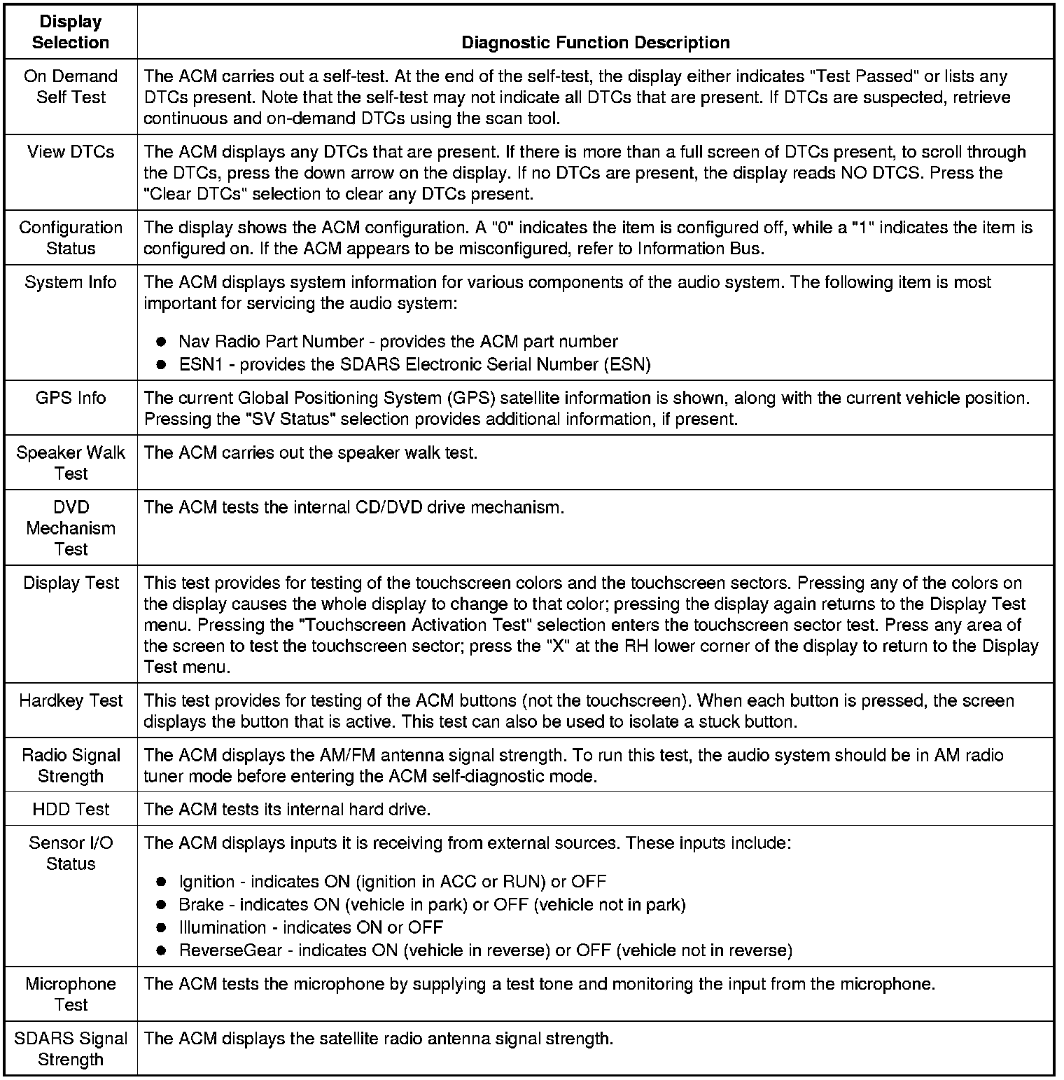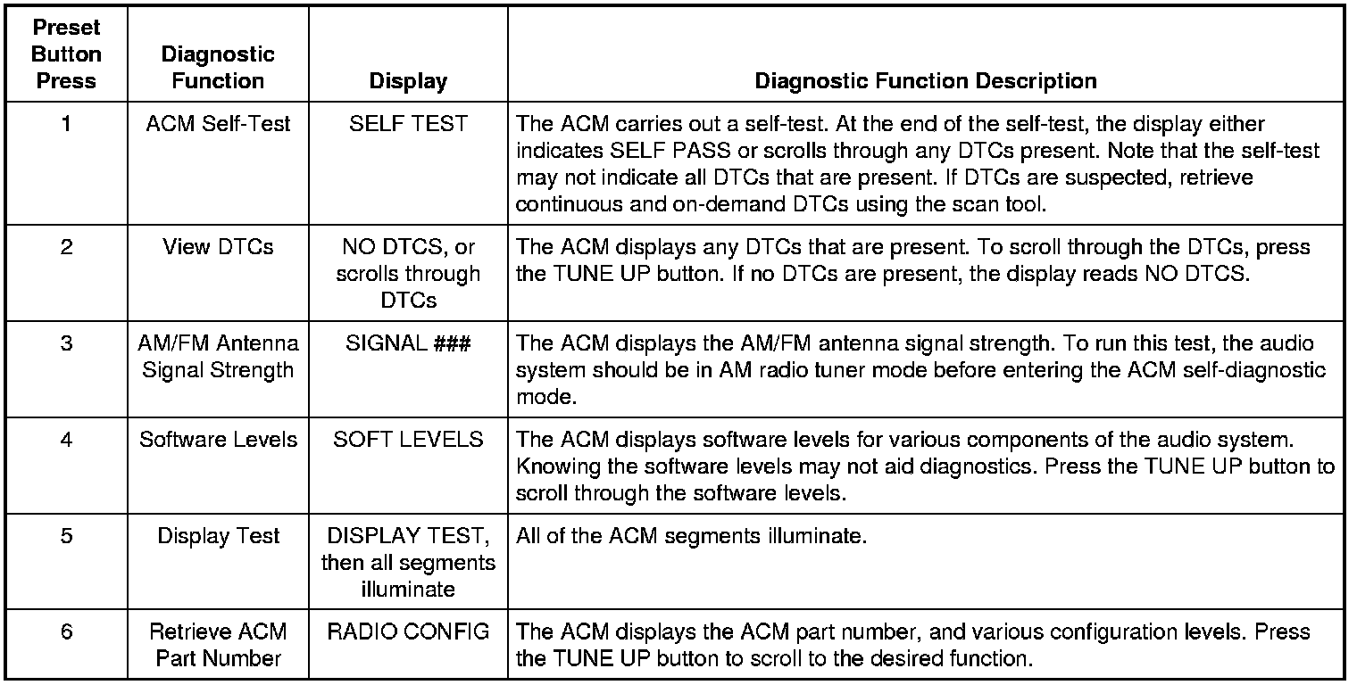 Audio Control Module (ACM) Self-Diagnostic Mode