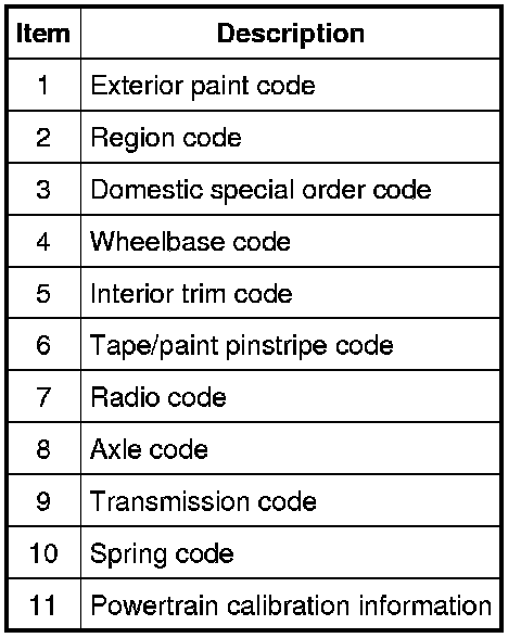 Powertrain calibration information is printed in the lower right corner of the VC label. Only the base calibration information is printed. Revision levels will not appear, however, they can be obtained through a scan tool using the most current software revision.
