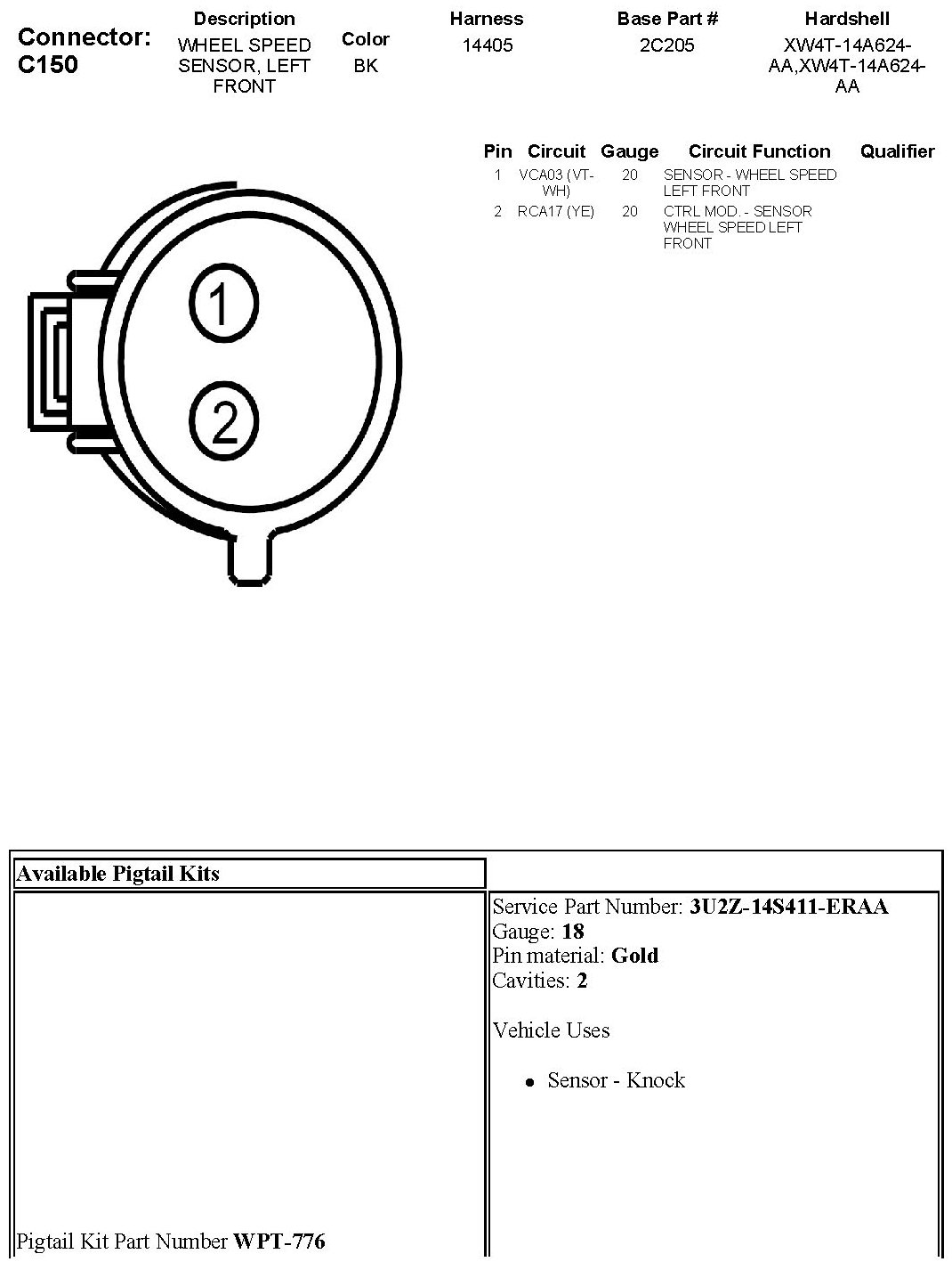 Wheel Speed Sensor, Left Front