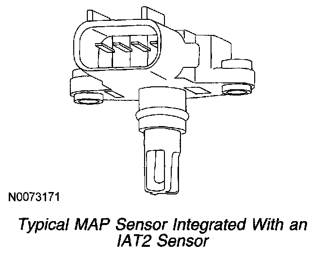 The MAP sensor for speed density control systems is centrally located on the intake manifold. The MAP sensor measures the intake manifold pressure. The powertrain control module (PCM) uses the information from the MAP sensor to determine the speed density air charge and provide input used for various spark control functions. The MAP sensor for a speed density system is integral with the intake air temperature 2 (IAT2) sensor.