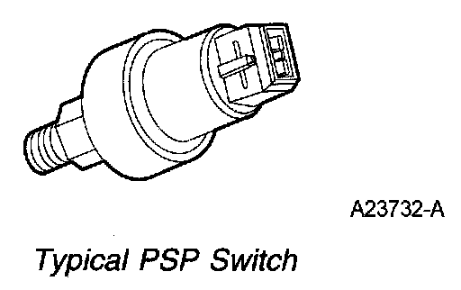 The PSP switch monitors the hydraulic pressure within the power steering system. The PSP switch is a normally closed switch that opens as the hydraulic pressure increases. The PCM provides a low current voltage on the PSP circuit. When the PSP switch is closed, this voltage is pulled low through the SIG RTN circuit. The PCM uses the input signal from the PSP switch to compensate for additional loads on the engine by adjusting the idle RPM and preventing engine stall during parking maneuvers. Also, the PSP switch signals the PCM to adjust the transmission EPC pressure during increased engine load, such as during parking maneuvers.