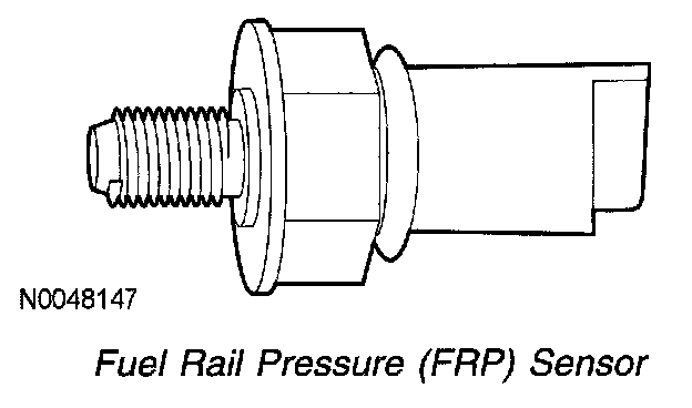 The FRP sensor is located on the fuel rail, and provides a feedback signal to indicate the fuel rail pressure to the PCM. The PCM uses the FRP signal to command the correct injector timing and pulse width for proper fuel delivery at all speed and load conditions. The FRP sensor, along with the fuel volume regulator (part of the fuel injection pump), form a closed loop fuel pressure control system. An electrically faulted FRP sensor results in the deactivation of the fuel injection pump. Fuel pressure to injectors is then provided only by the FP module. When the fuel injection pump is de-energized and the injectors are active, the fuel rail pressure is approximately 70 kPa (10 psi) lower than FP module pressure due to the pressure drop across the fuel injection pump. Thus, if the FP module pressure is 448 kPa (65 psi), then the fuel rail pressure would be approximately 379 kPa (55 psi) if the injectors are active.