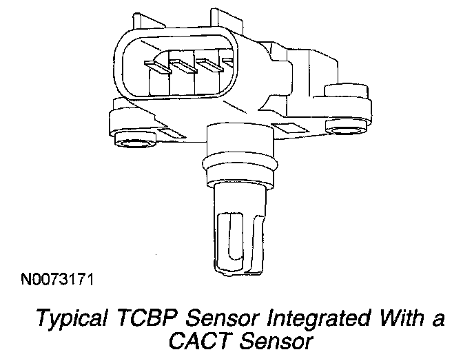 The TCBP sensor is located in the intake air tube between the charge air cooler (CAC) and the throttle body. The TCBP sensor measures the throttle inlet pressure. The powertrain control module (PCM) uses the information from the TCBP sensor to refine the estimate of the air flow rate through the throttle and to determine the desired boost pressure. The TCBP sensor for a speed density system is integral with the charge air cooler temperature (CACT) sensor.