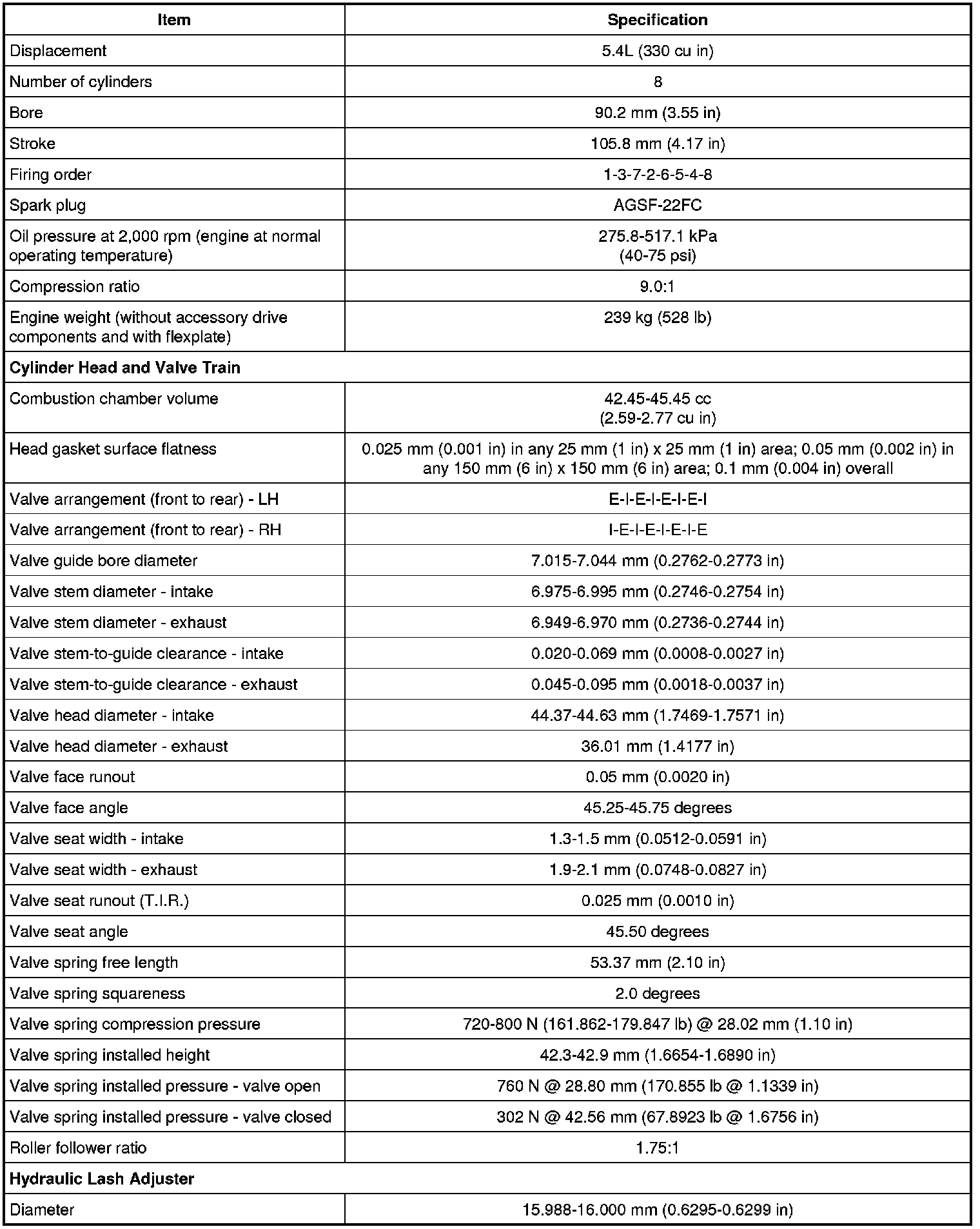 Home >> Ford >> 2010 >> E 450 V8-5.4L >> Repair and Diagnosis >> Specifications >> Mechanical Specifications >> Engine >> System Specifications >> General Specifications