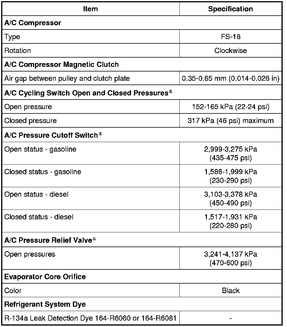 a Manifold gauge set pressures may vary slightly depending on the distance between the service gauge port valve and the A/C pressure relief valve, the A/C cycling switch or the dual function pressure switch location.