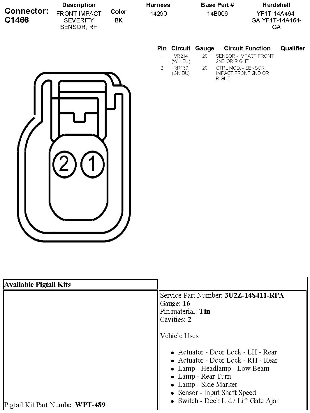 Front Impact Severity Sensor, RH