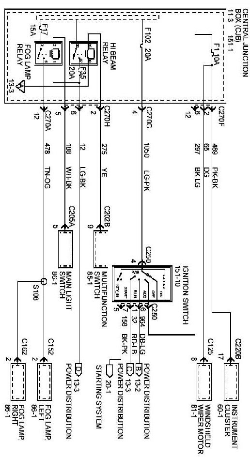 Ford Motor Company uses three different circuit numbering conventions: Standard Circuit Numbering System, Global Circuit Numbering System, and New Global Circuit Numbering System (NGCNS). With each, the circuit number (which identifies a specific circuit function) is followed by the wire color.