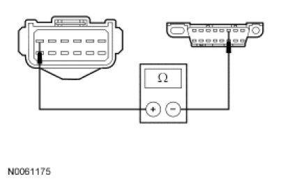 - Measure the resistance between the LH headlamp assembly C1021b-9, circuit GD120 (BK/GN), harness side and ground.