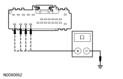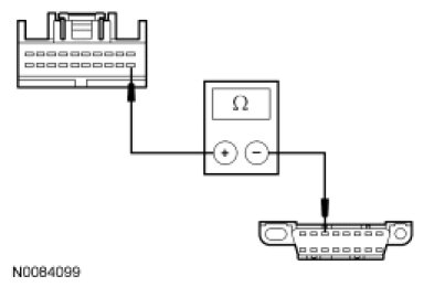 - Measure the resistance between the audio DSP module C4348a-1, circuit VDB07 (VT/OG), harness side and the DLC C251-11, circuit VDB07 (VT/OG), harness side.