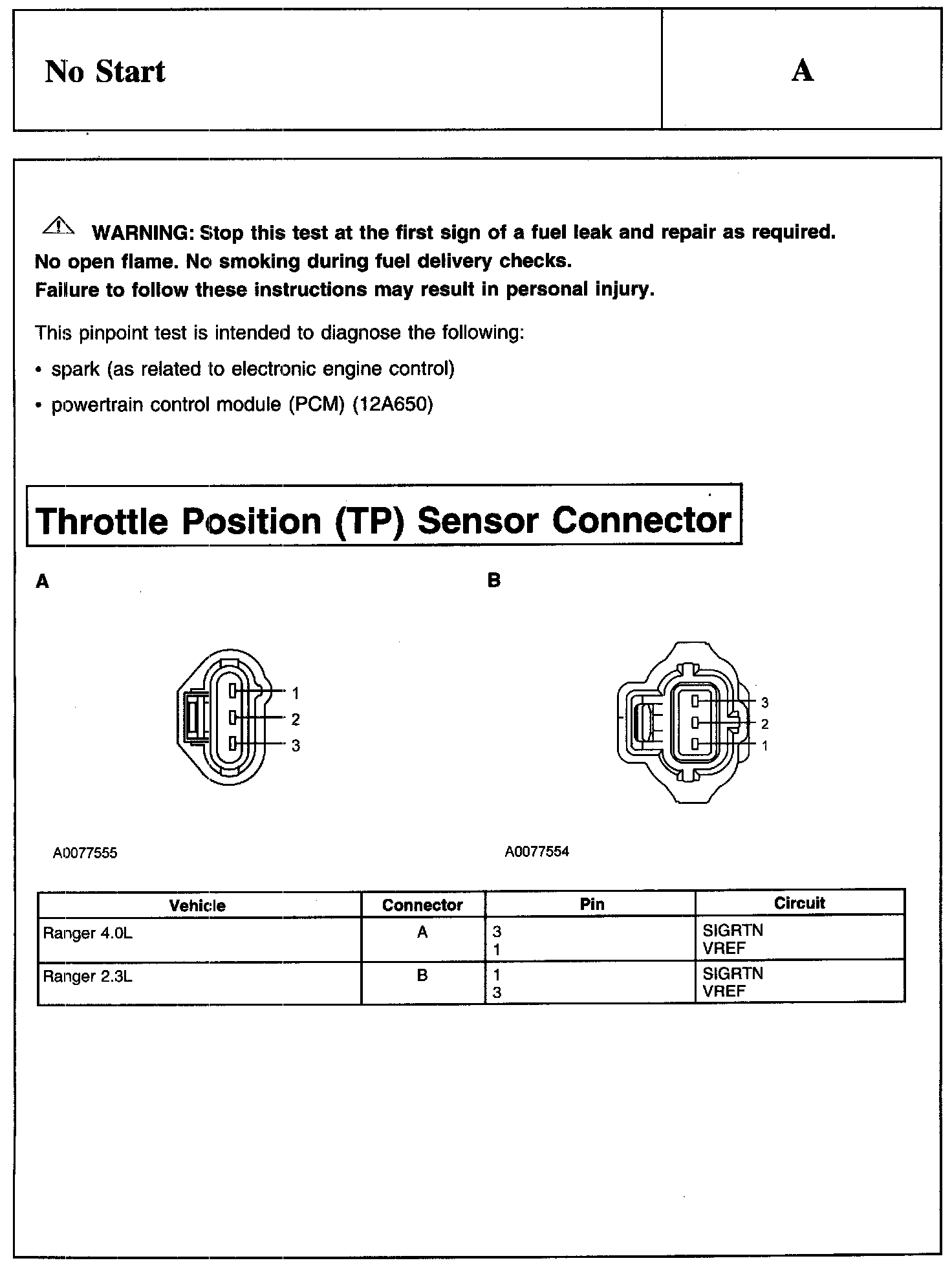 PINPOINT TEST A: NO START