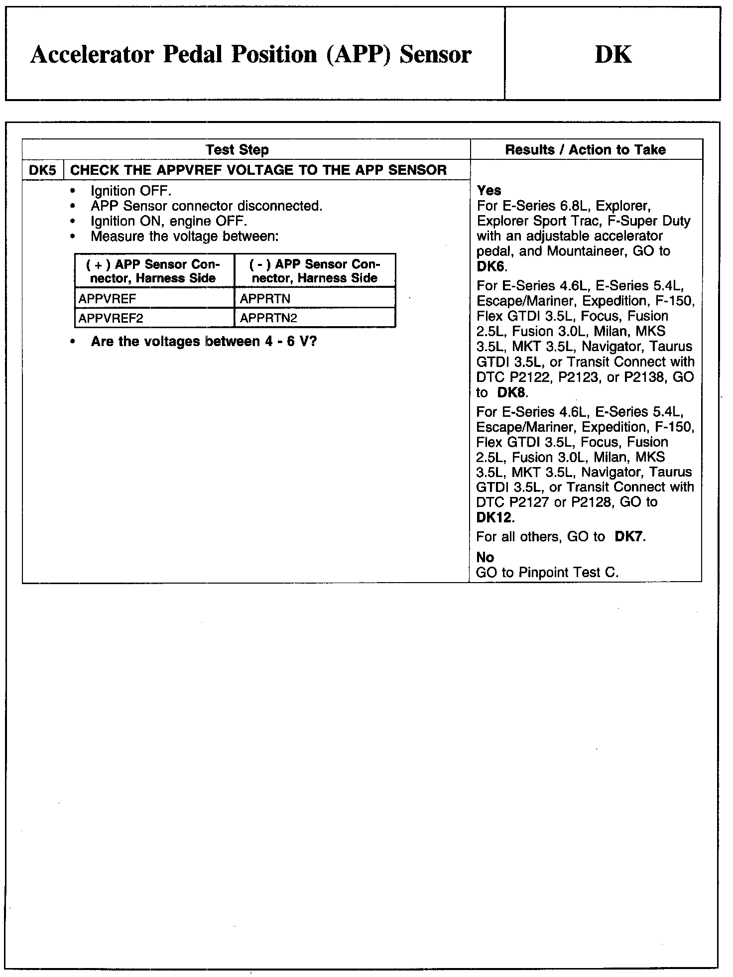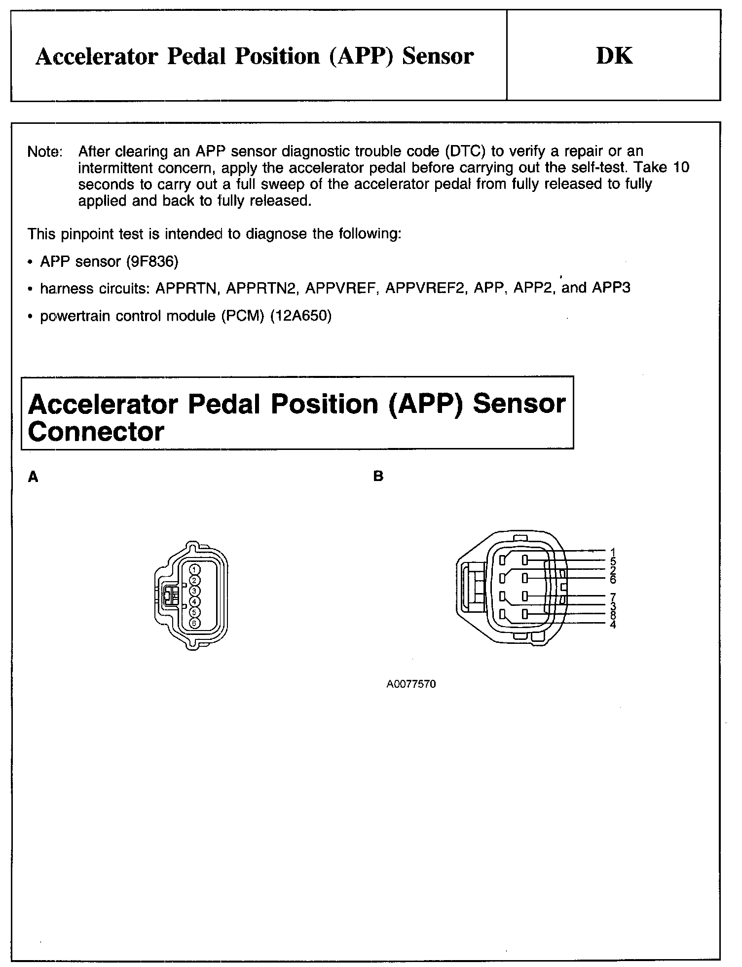 PINPOINT TEST DK: ACCELERATOR PEDAL POSITION (APP) SENSORNote And Accelerator Pedal Position (APP) Sensor Connector: