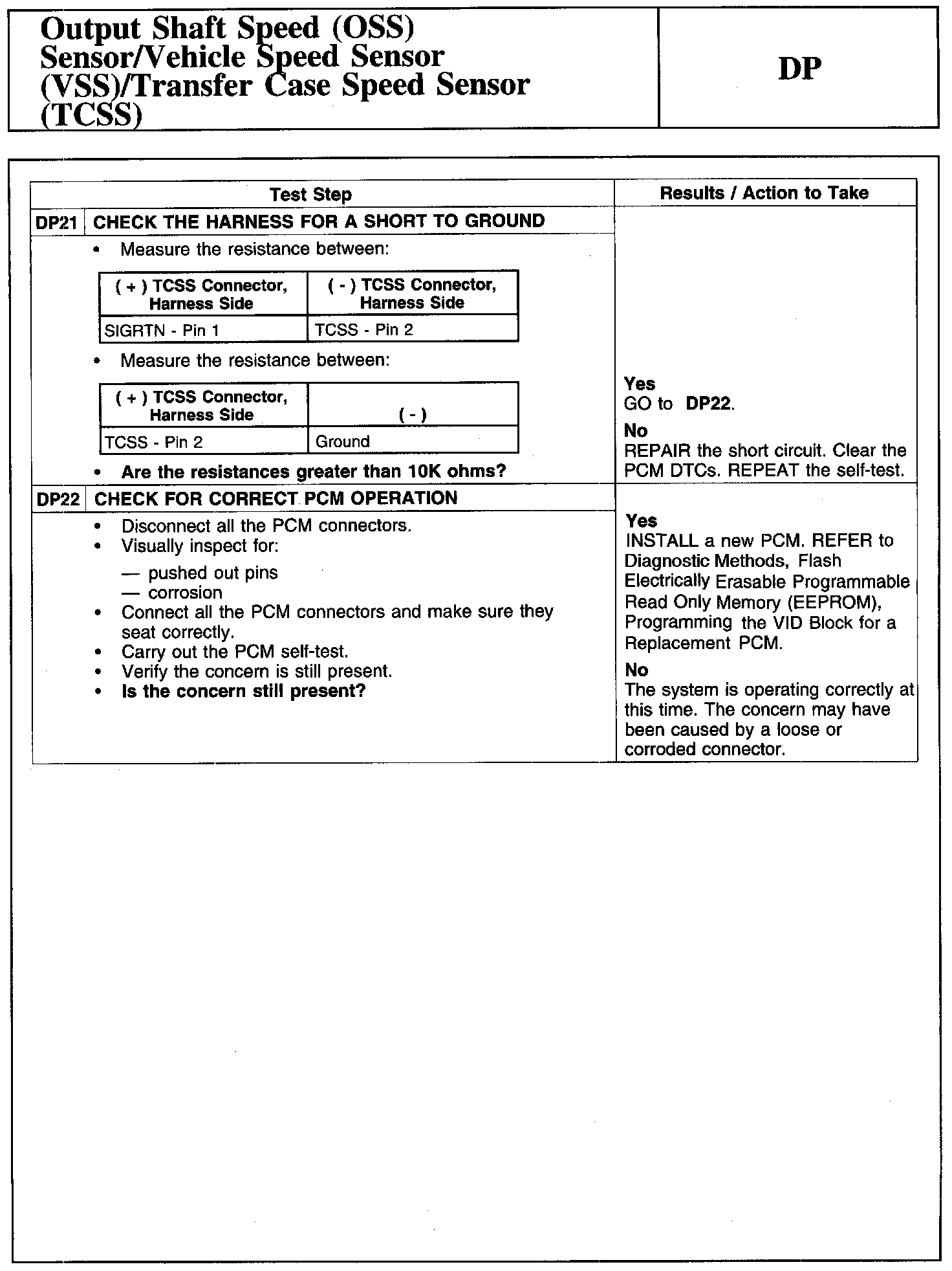 Test DP: Output Shaft Speed (OSS) Sensor/Vehicle Speed Sensor (VSS)/Transfer Case Speed Sensor (TCSS)