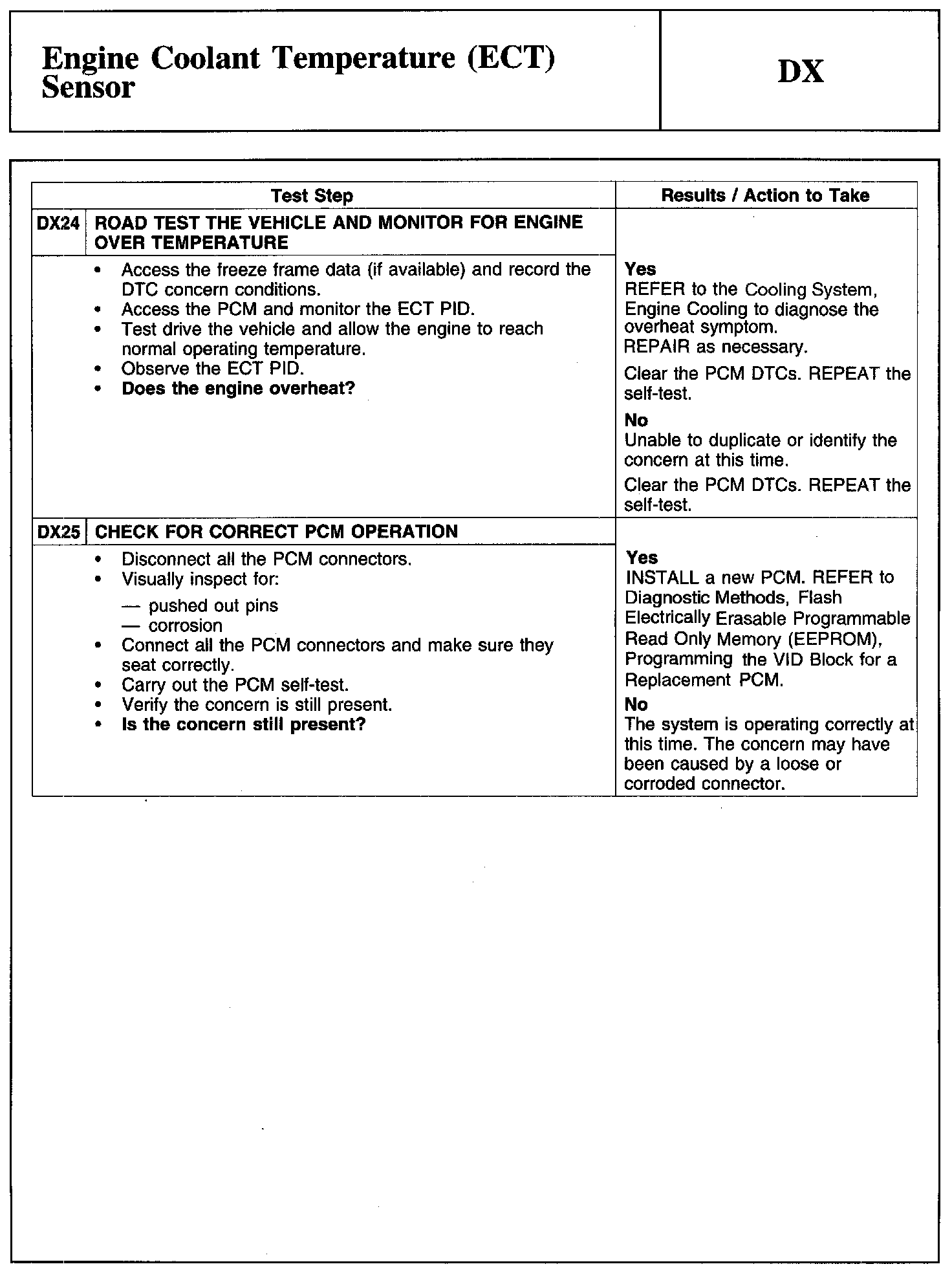 Test DX: Engine Coolant Temperature (ECT) Sensor