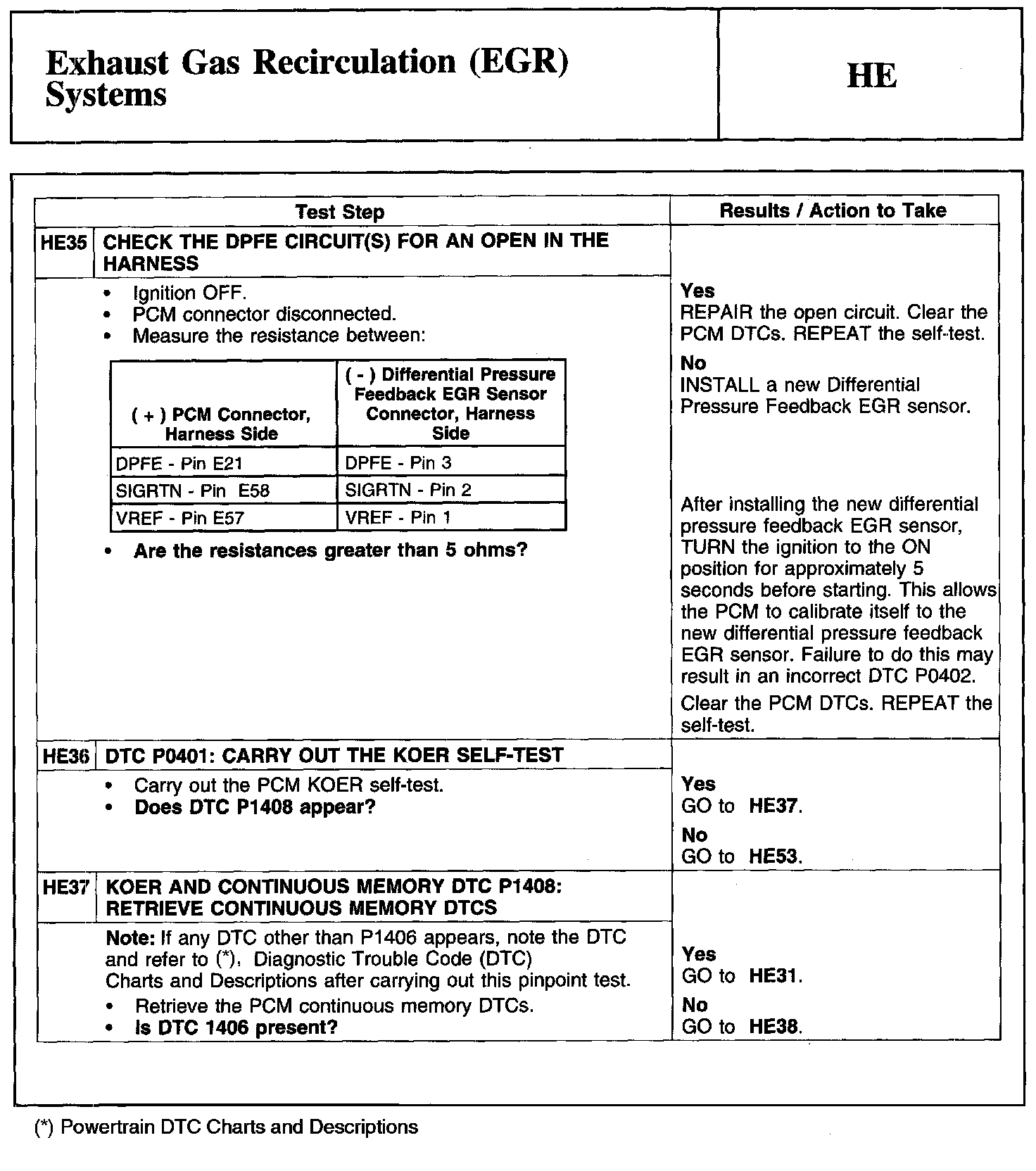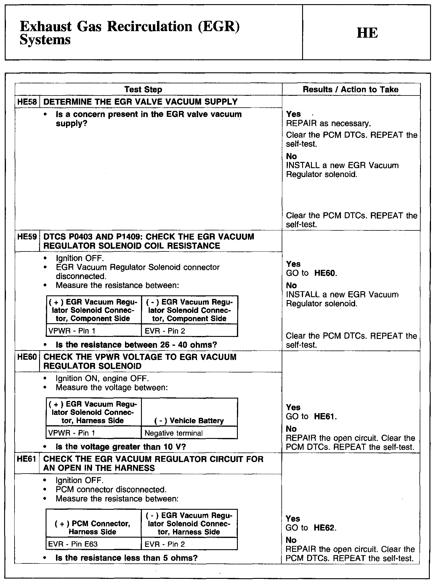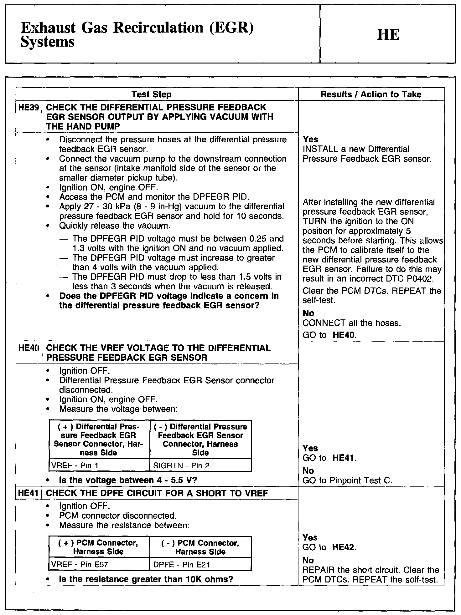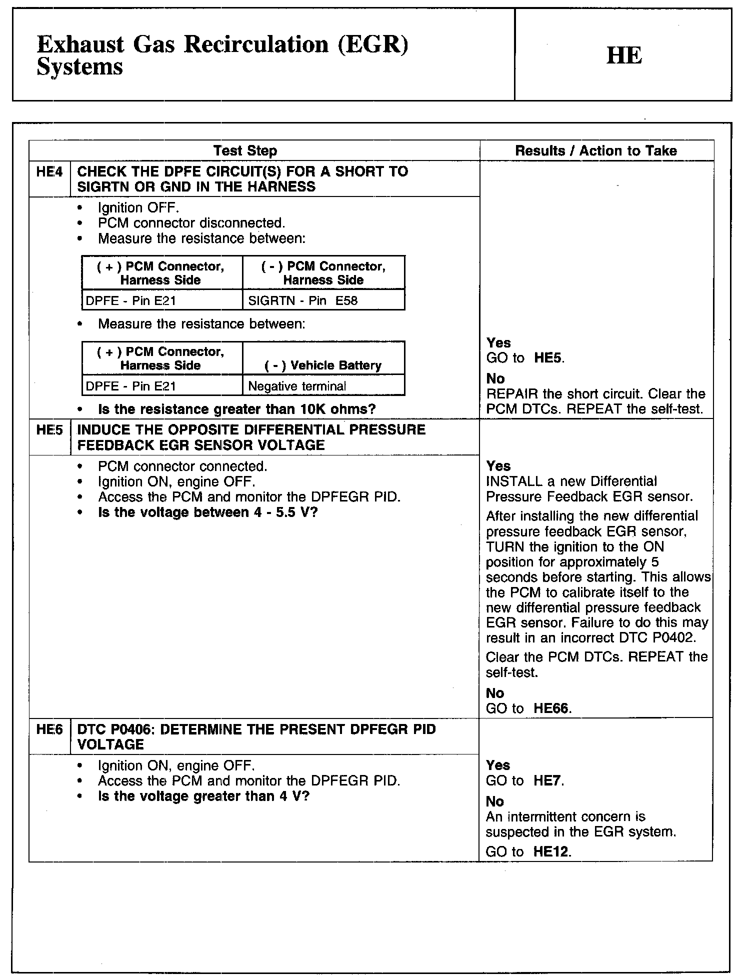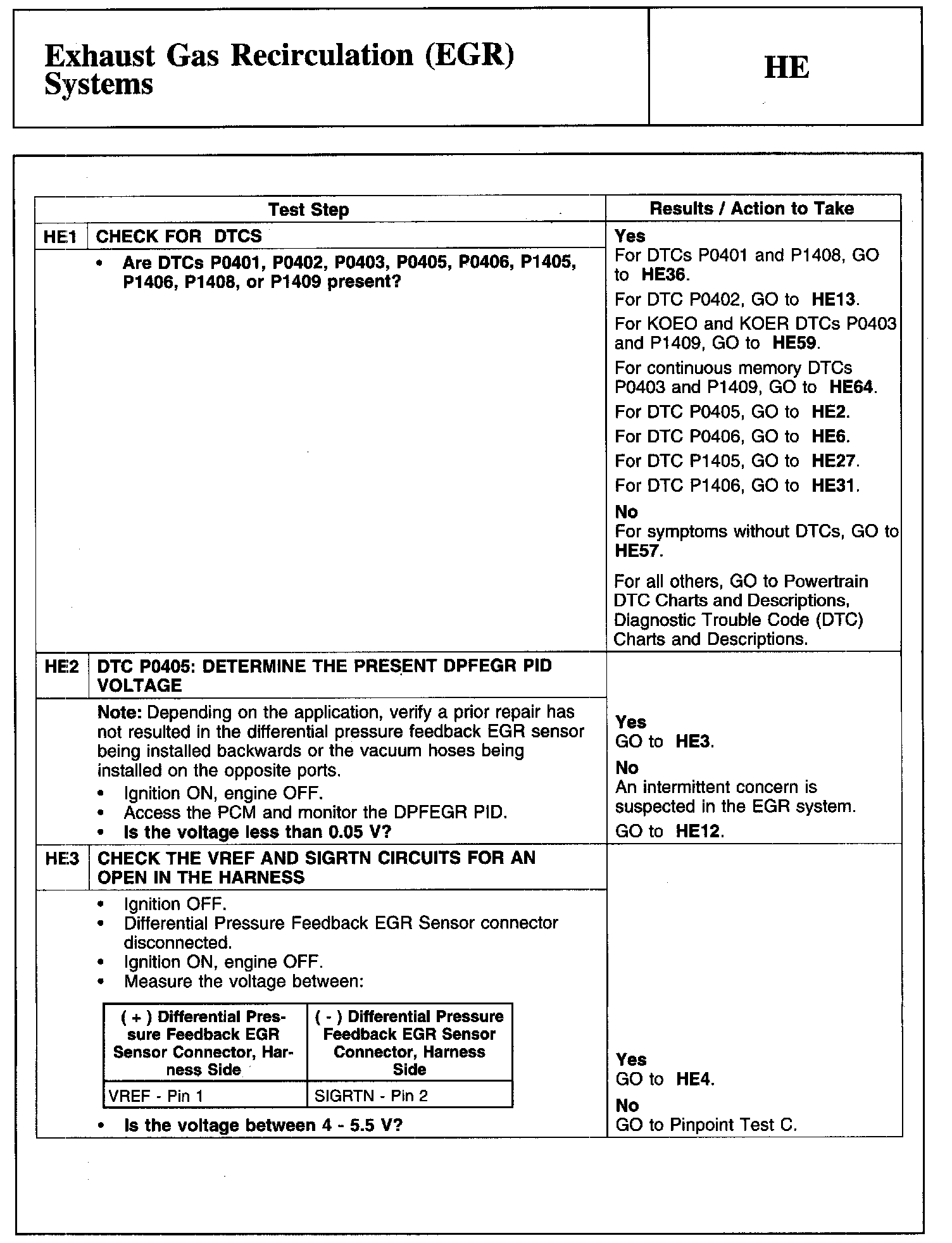 Home >> Ford >> 2010 >> Edge AWD V6-3.5L >> Repair and Diagnosis >> Powertrain Management >> Computers and Control Systems >> Testing and Inspection >> Pinpoint Tests >> Test HE: Exhaust Gas Recirculation (EGR) Systems