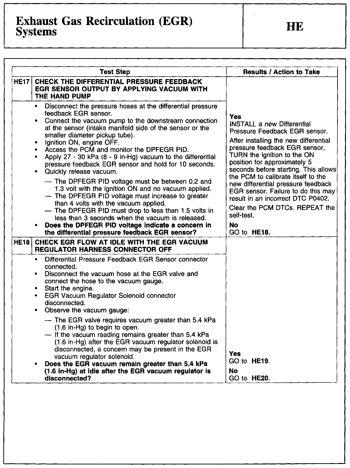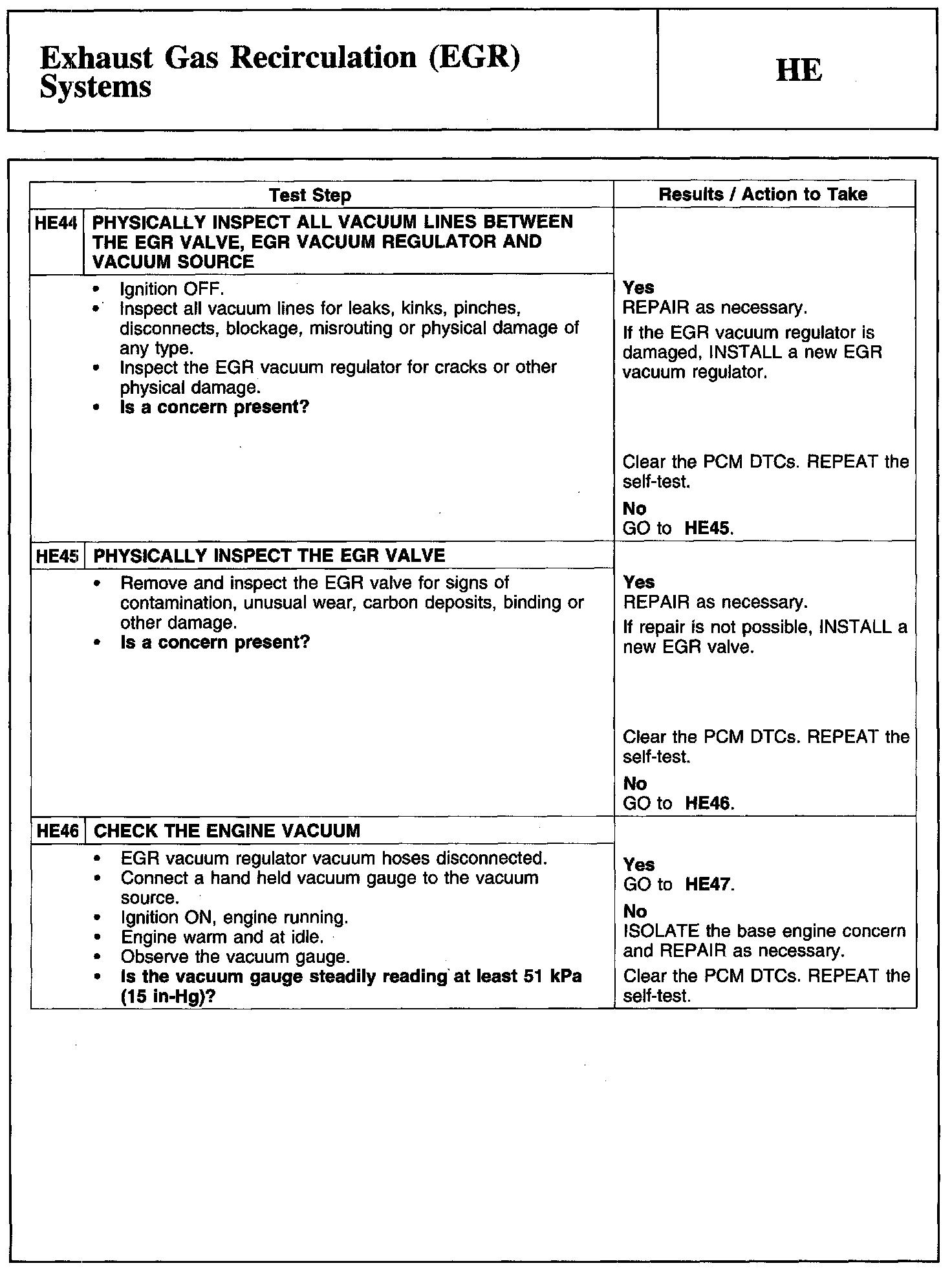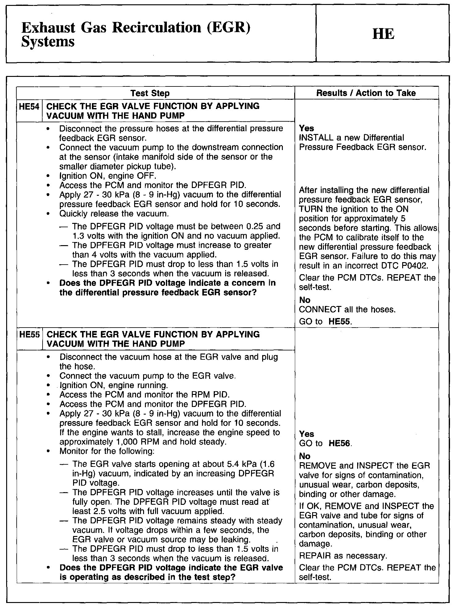 Test HE: Exhaust Gas Recirculation (EGR) Systems