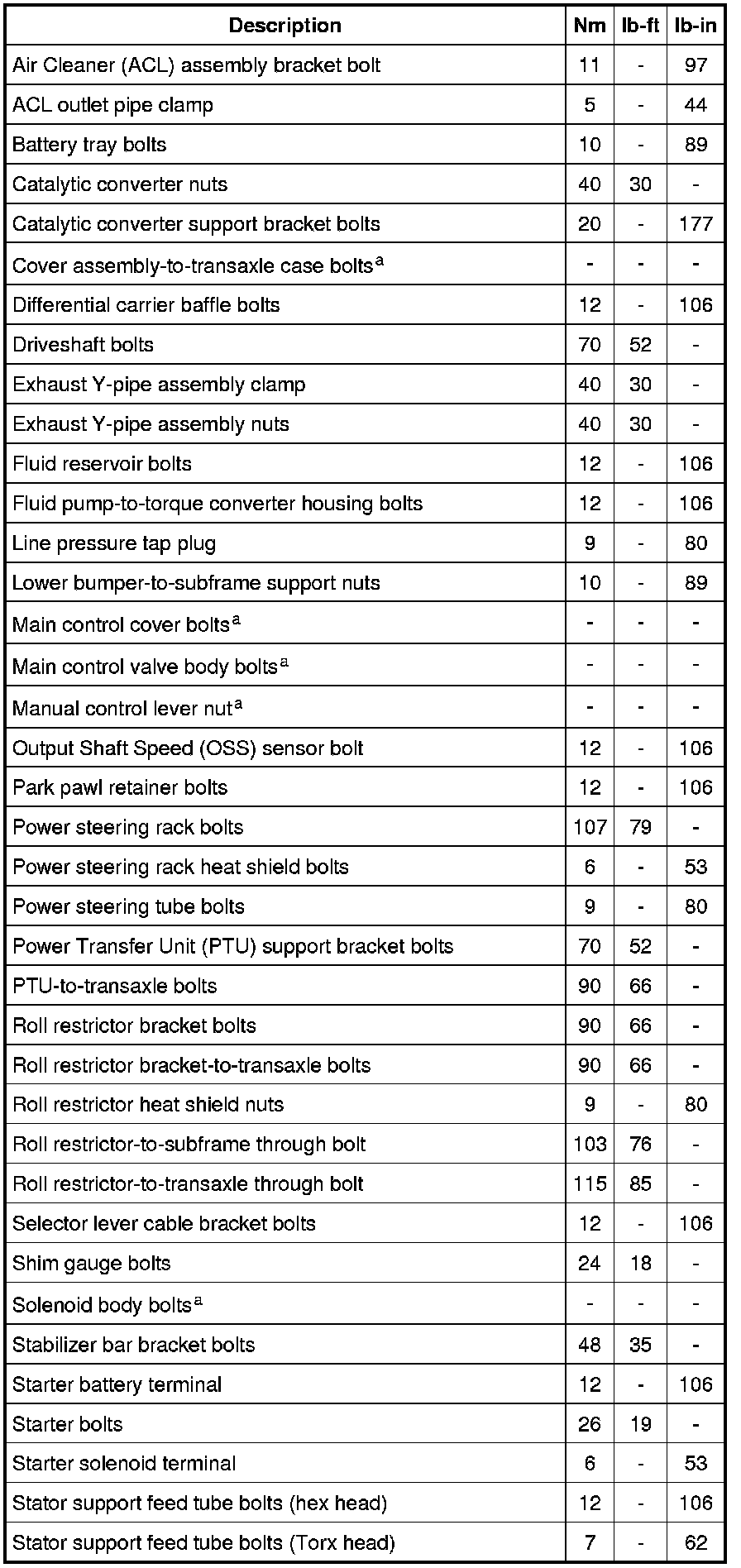 Torque Specifications