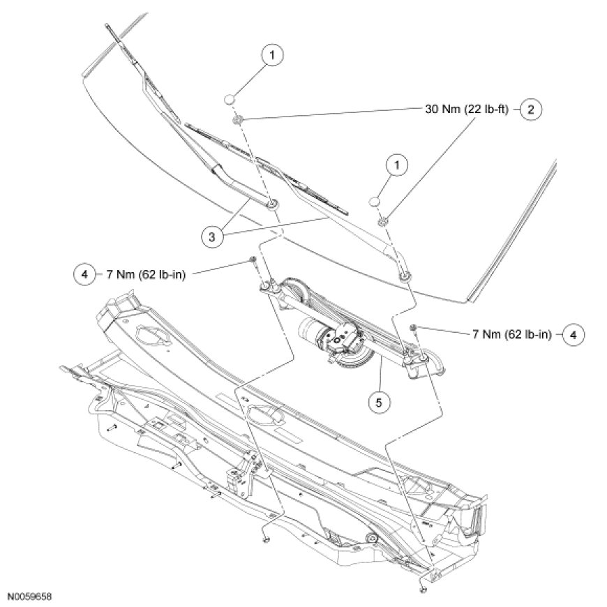 Wiper and Washer System - Exploded View, Front