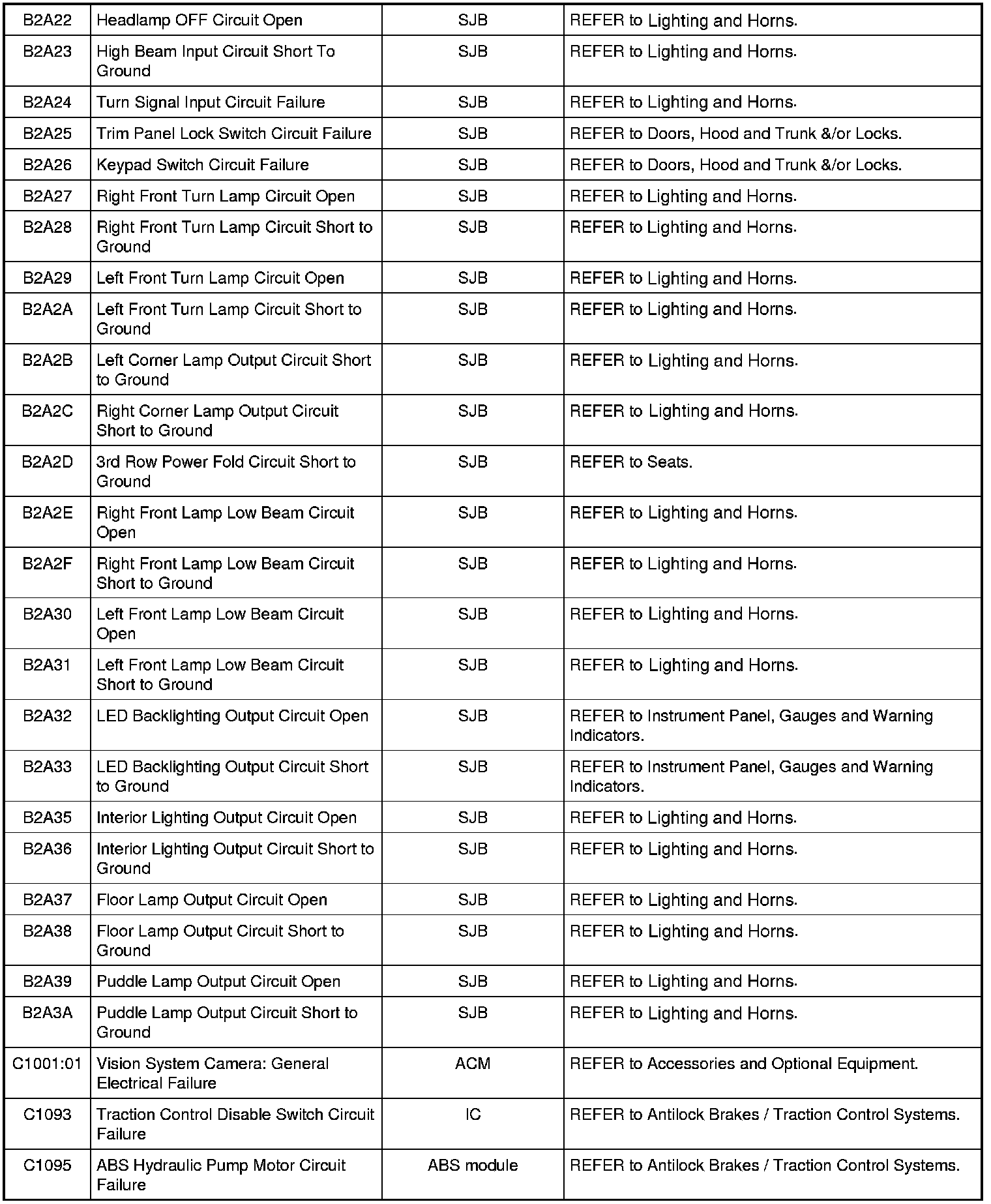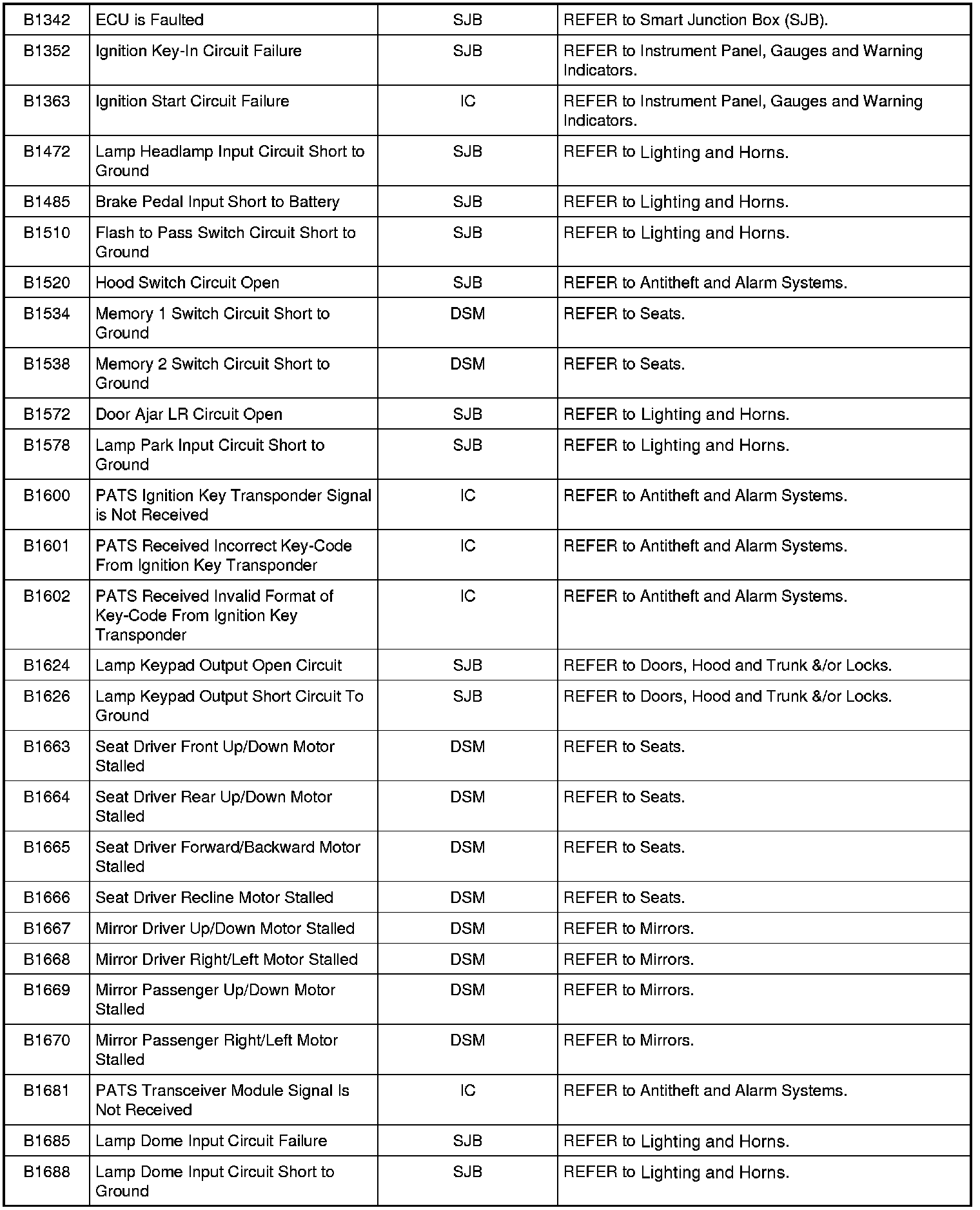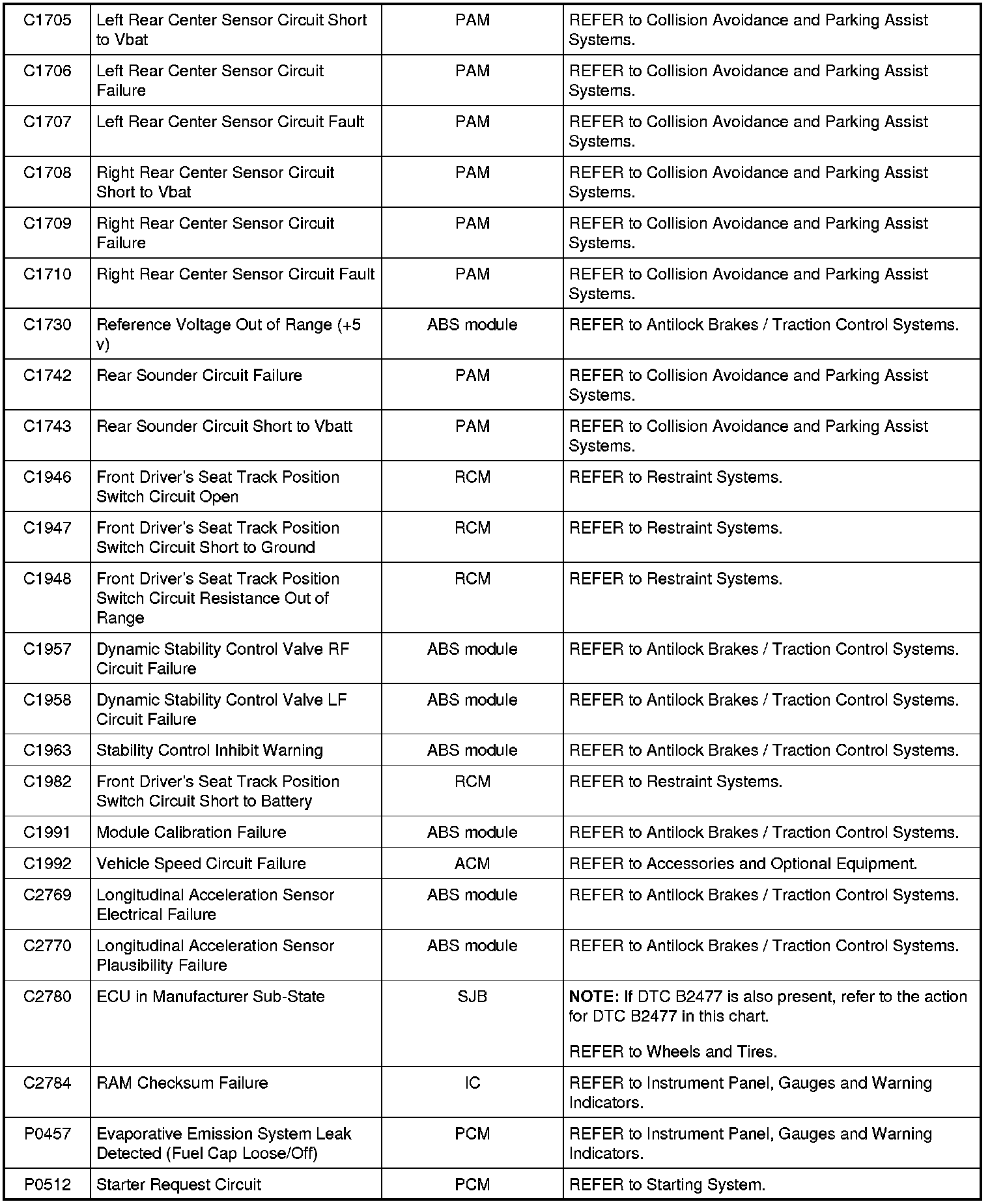 NOTE: Some of these modules utilize a 5-character DTC followed by a 2-character failure-type code. The failure-type code provides information about specific fault conditions such as opens, or shorts to ground. Continuous memory DTCs have an additional 2-character DTC status code suffix to assist in determining DTC history.