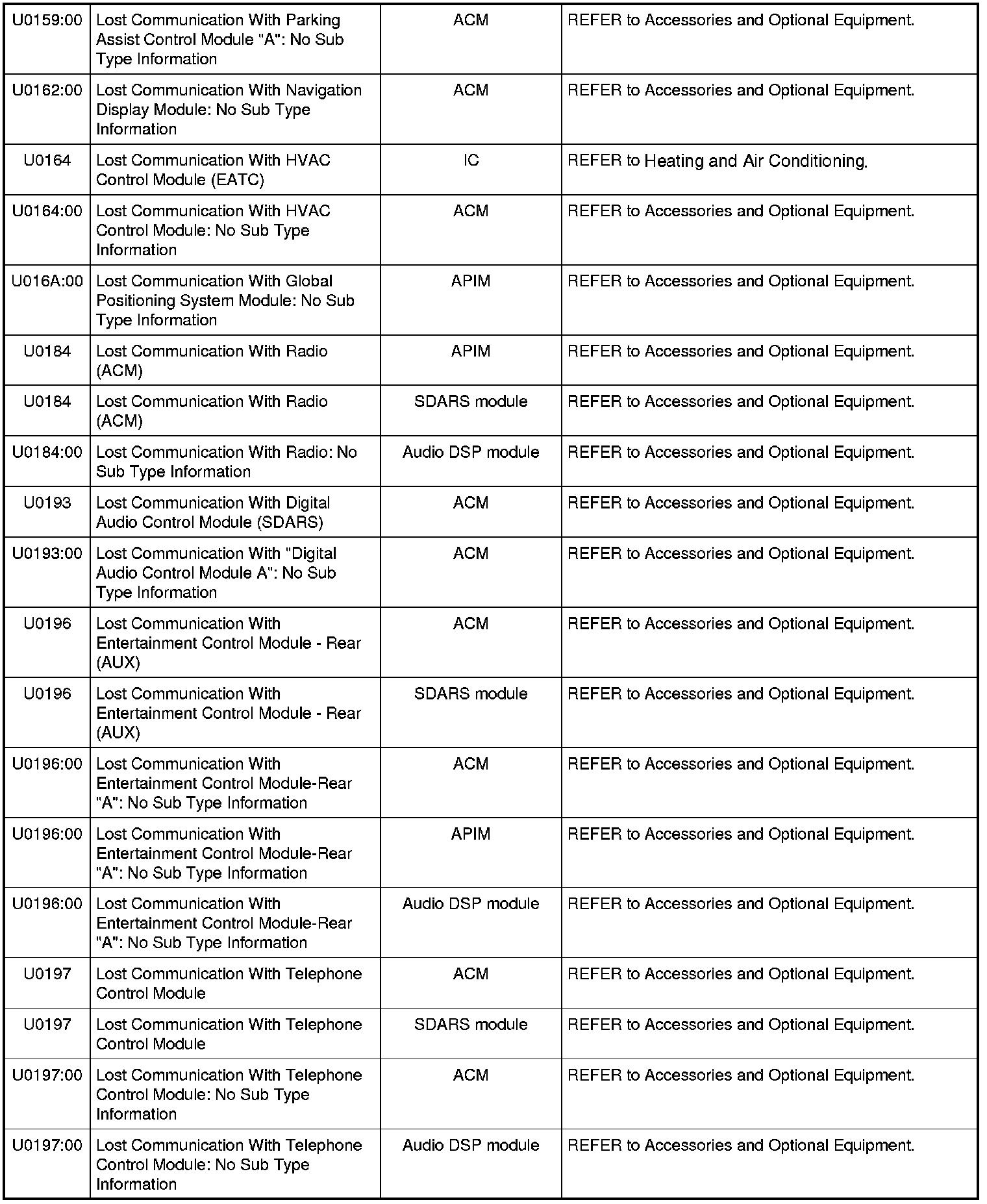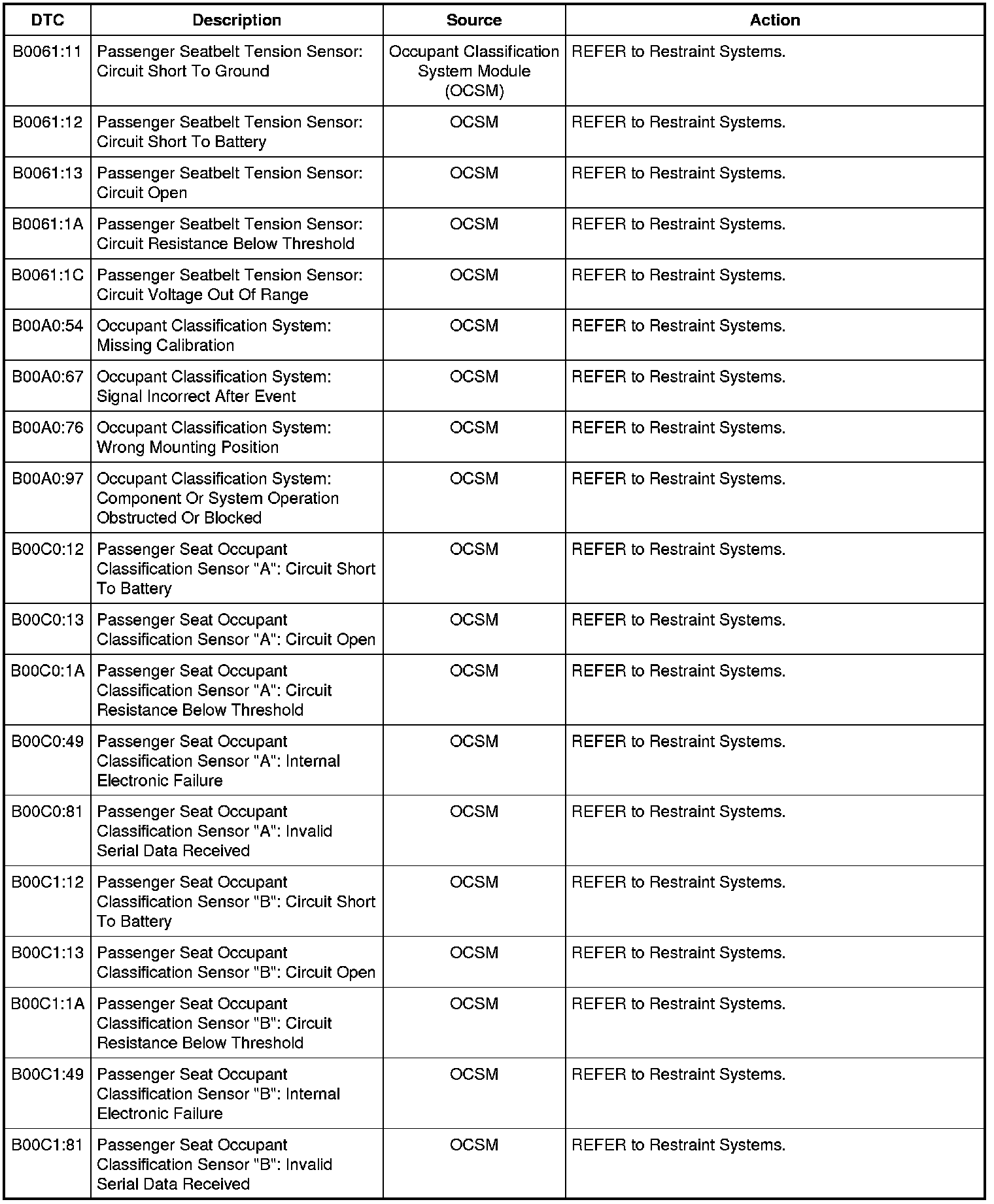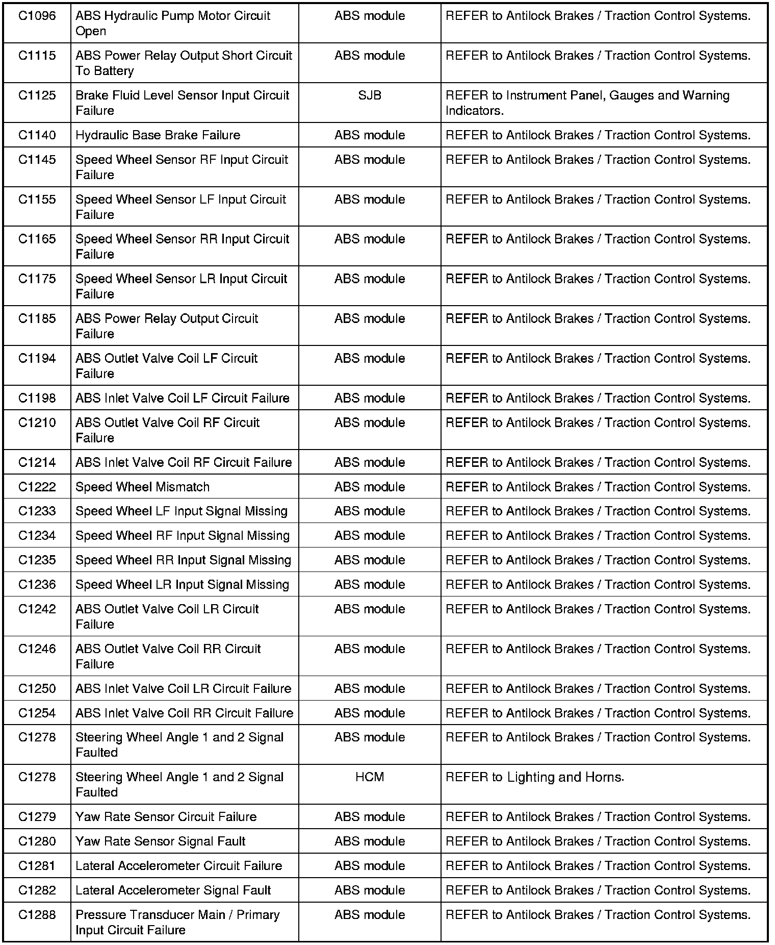 NOTE: Some of these modules utilize a 5-character DTC followed by a 2-character failure-type code. The failure-type code provides information about specific fault conditions such as opens, or shorts to ground. Continuous memory DTCs have an additional 2-character DTC status code suffix to assist in determining DTC history.