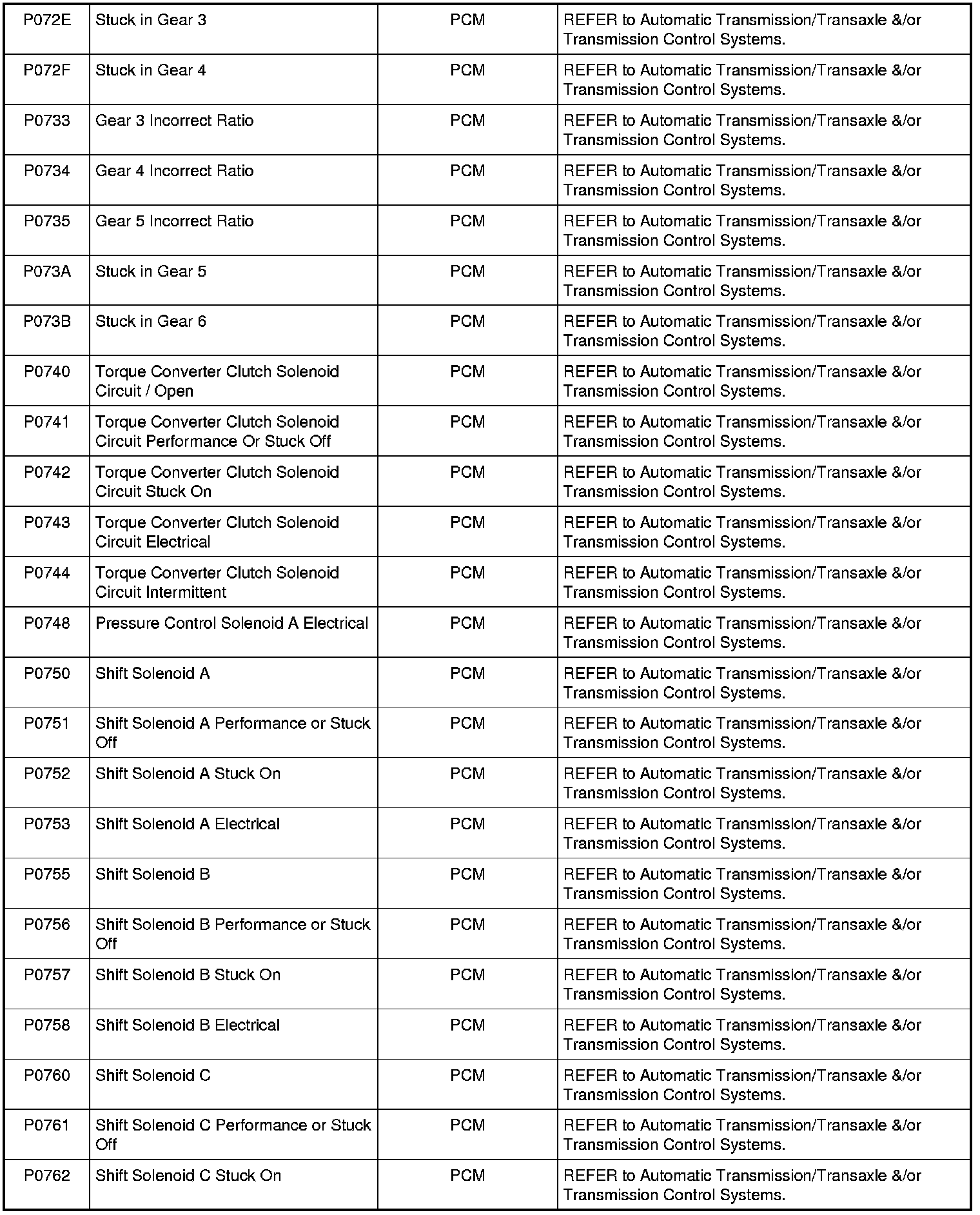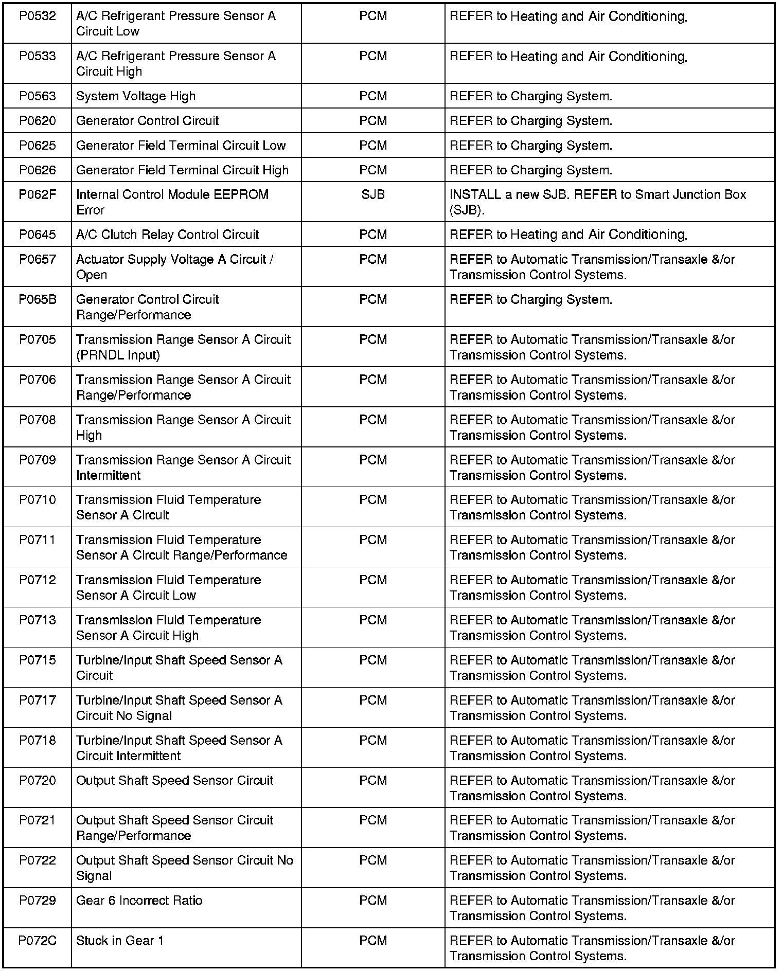 NOTE: Most powertrain (P-code) DTCs are diagnosed in Computers and Control Systems Information. If the P-code retrieved is not listed, refer to Computers and Control Systems Information to continue diagnostics.