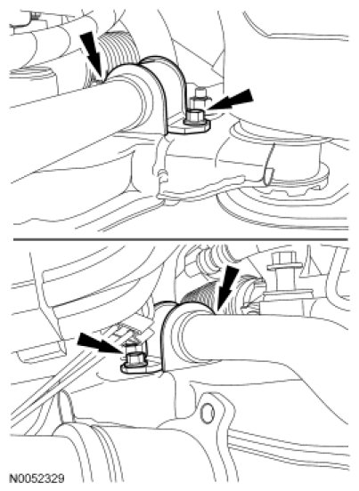 12. Remove the 4 bolts and position the stabilizer bar aside using a suitable length of mechanic's wire.
