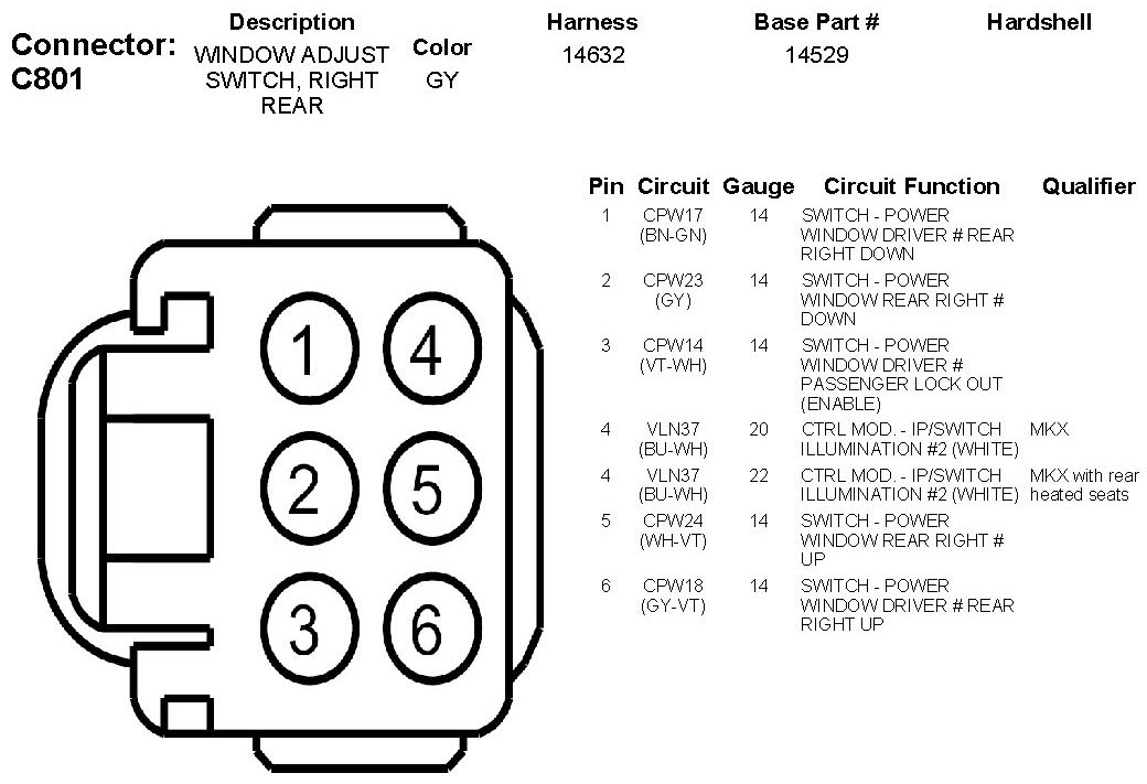 Window Adjust Switch, Right Rear