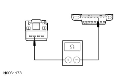 - Measure the resistance between the SASM C222-3, circuit VDB04 (WH/BU), harness side and the DLC C251-6, circuit VDB04 (WH/BU), harness side.