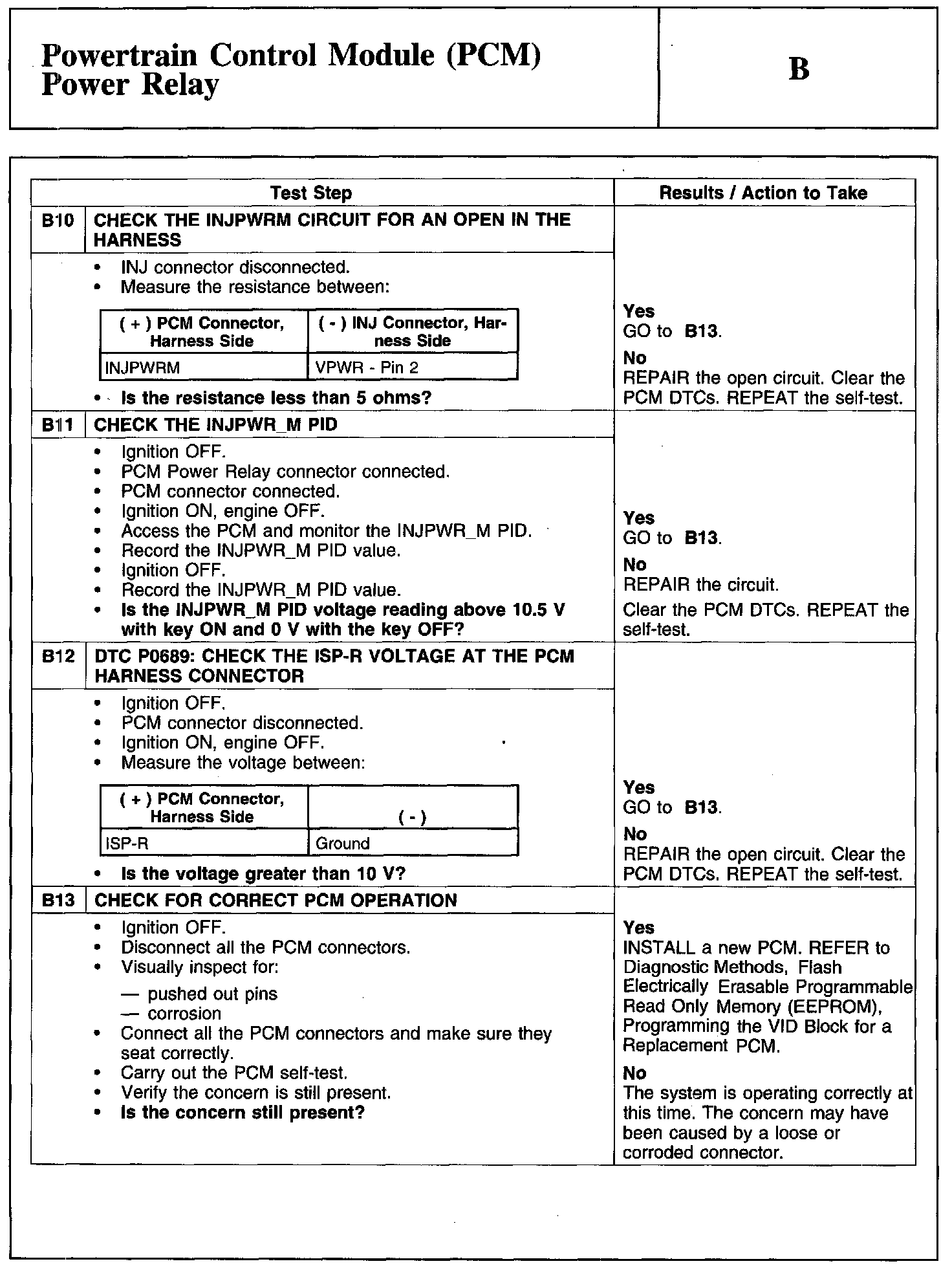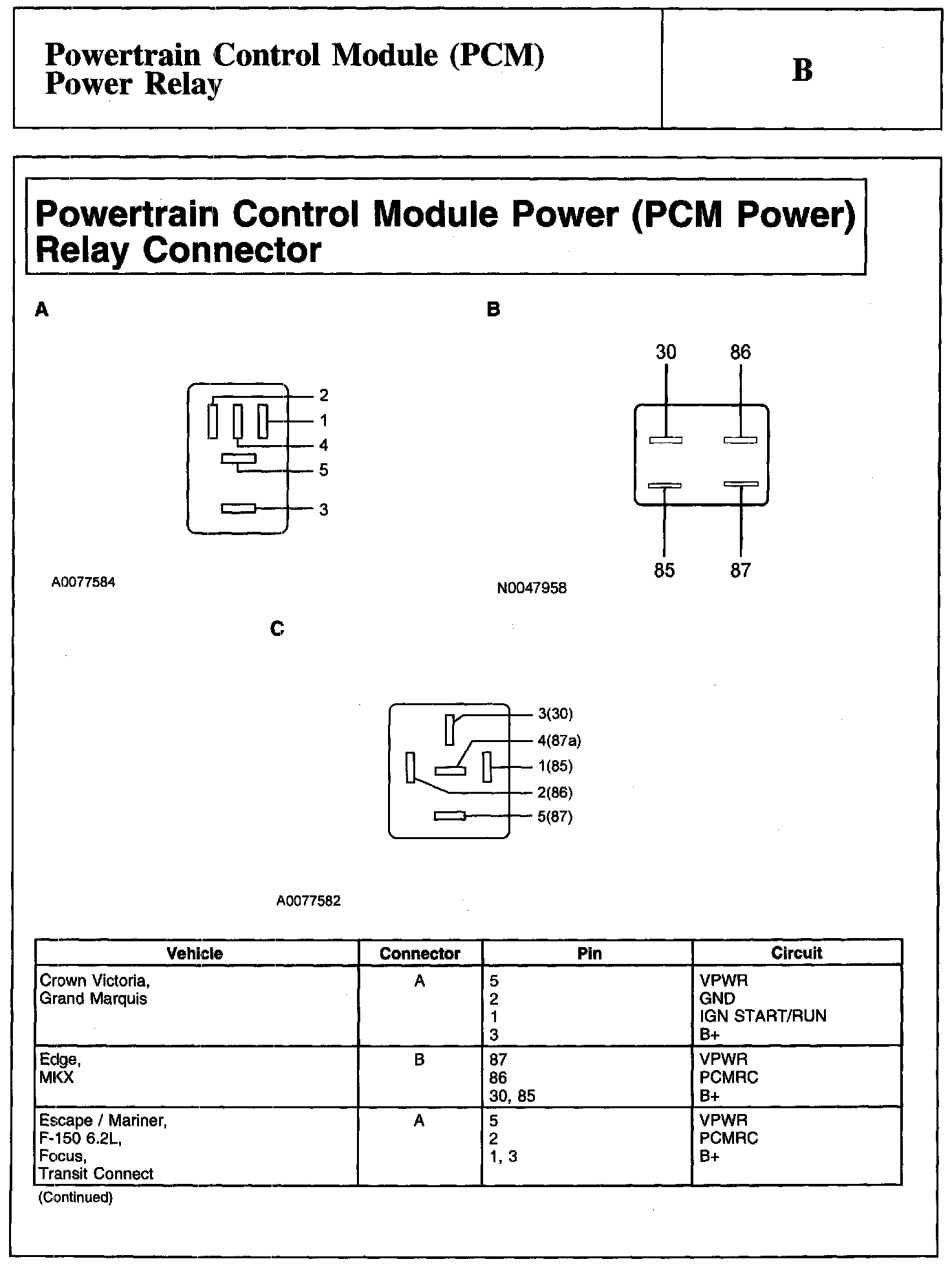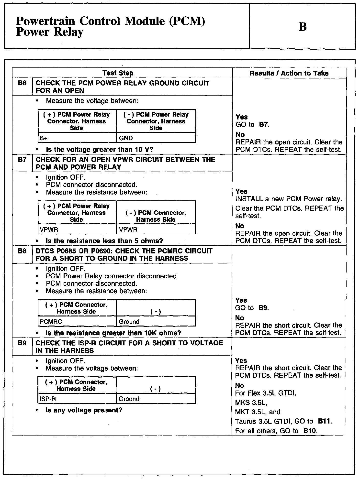 Home >> Ford >> 2010 >> Edge FWD V6-3.5L >> Repair and Diagnosis >> Powertrain Management >> Computers and Control Systems >> Testing and Inspection >> Pinpoint Tests >> Test B: Powertrain Control Module (PCM) Power Relay