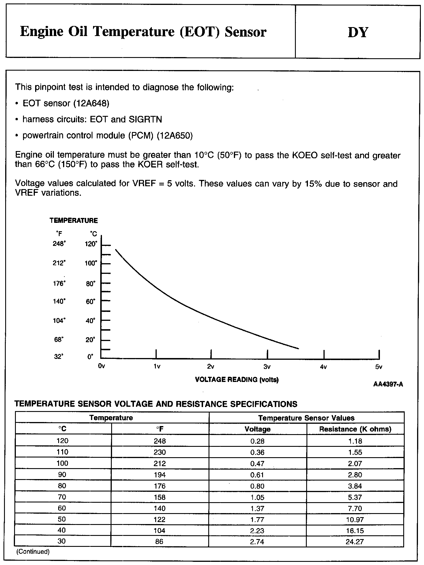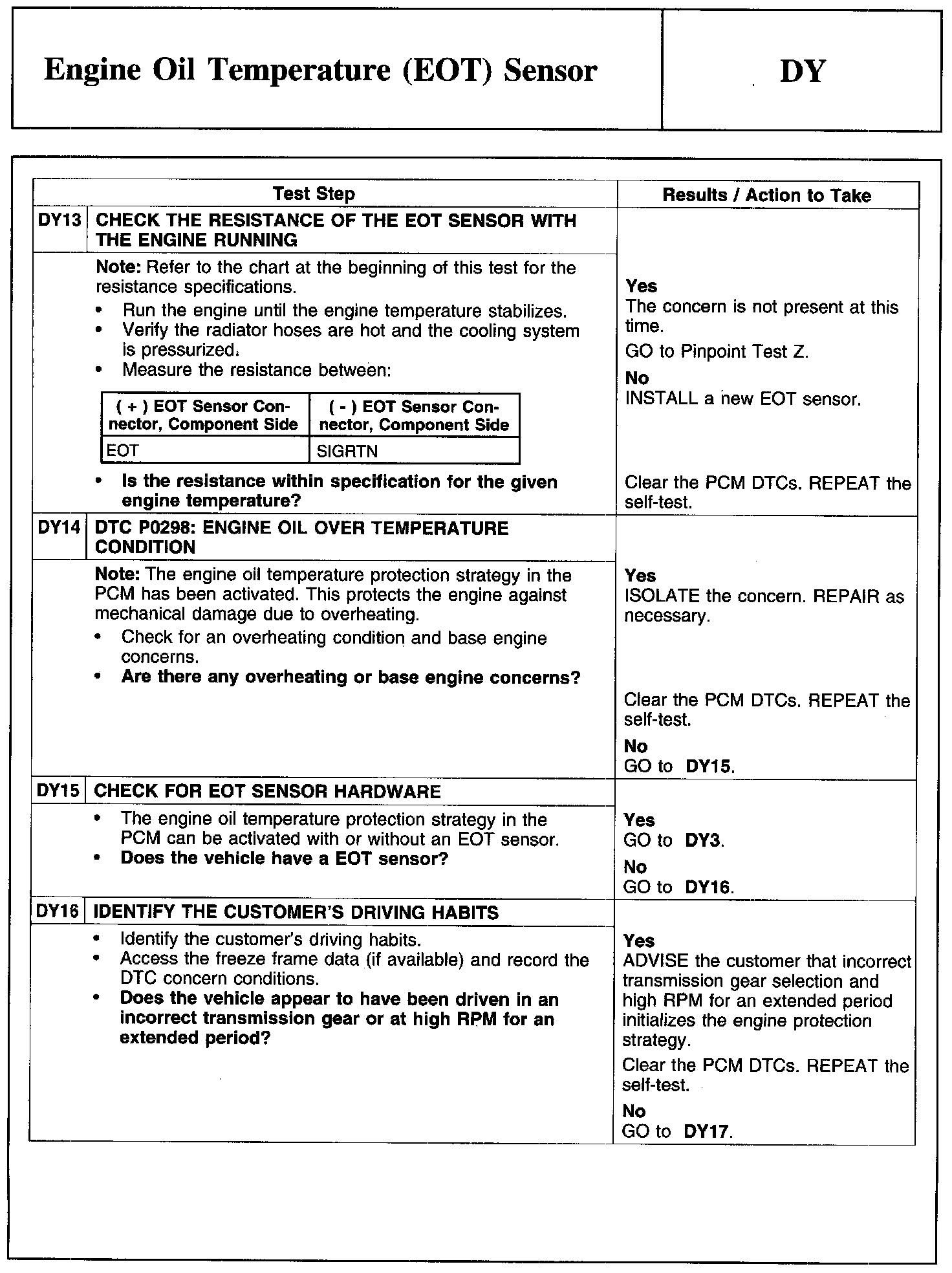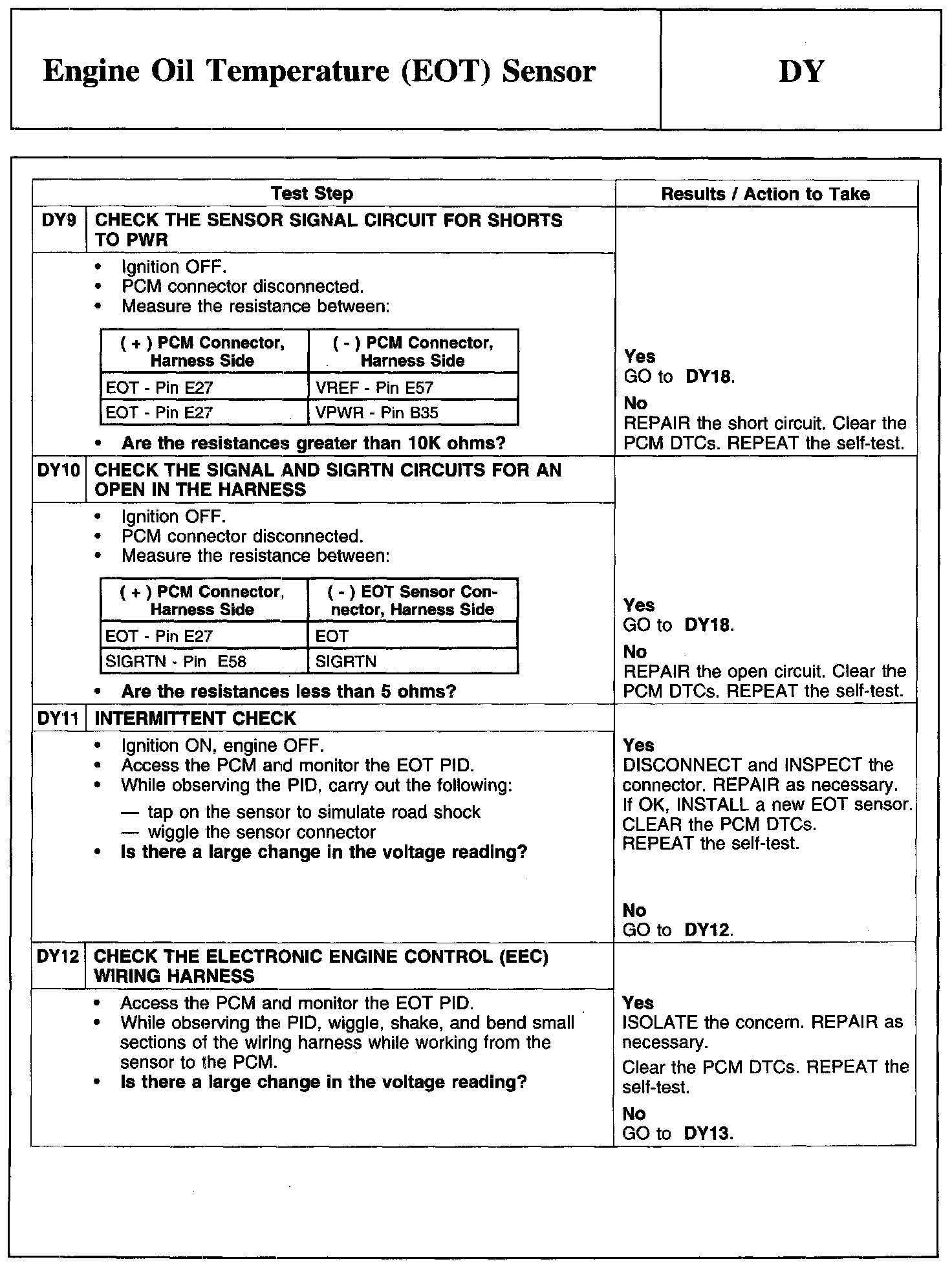 Test DY: Engine Oil Temperature (EOT) Sensor