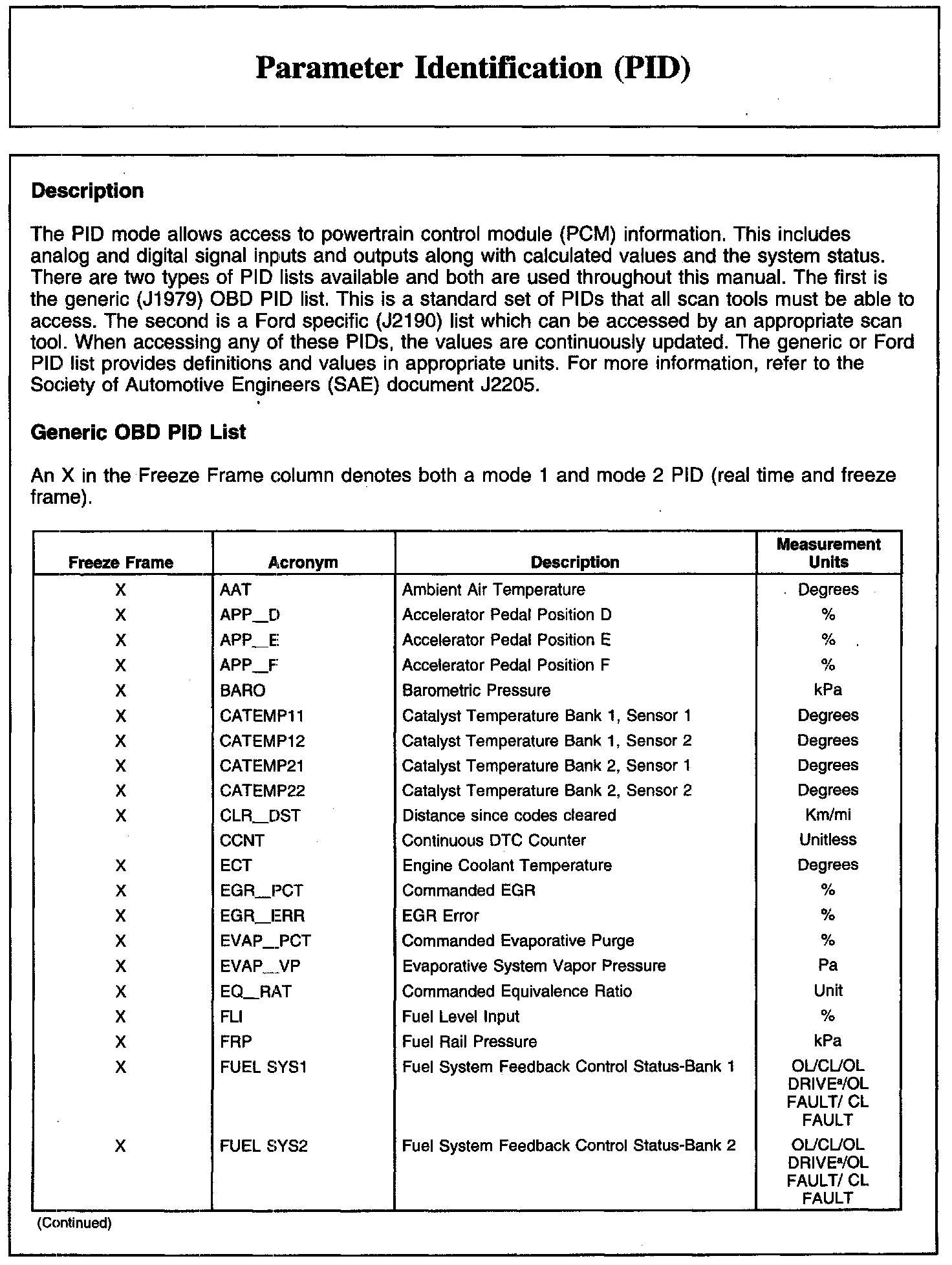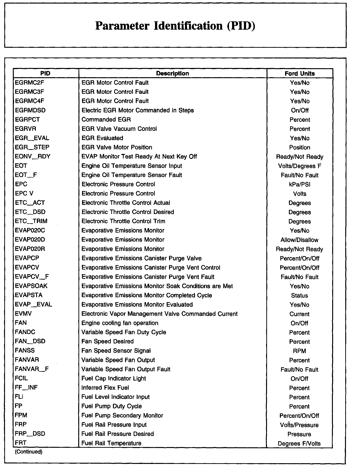 Home >> Ford >> 2010 >> Edge FWD V6-3.5L >> Repair and Diagnosis >> Powertrain Management >> Computers and Control Systems >> Testing and Inspection >> Scan Tool Testing and Procedures >> Parameter Identification (PID)