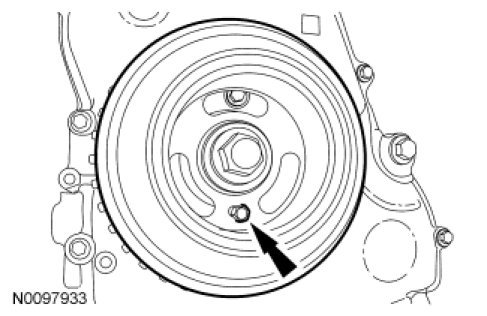3. Turn the crankshaft clockwise until the hole in the crankshaft pulley is in the 3 o'clock position.