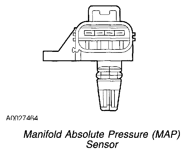The MAP sensor uses a piezo-resistive silicon sensing element to provide a voltage proportional to the absolute pressure in the intake manifold.
