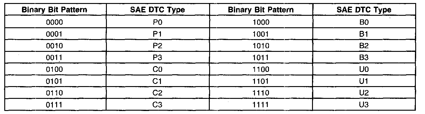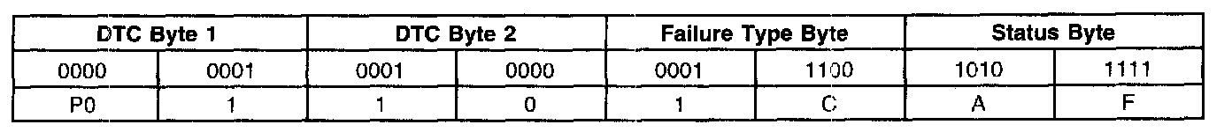 A list of failure type bytes is defined by SAE J2012 but is not described here because the PCM does not use the failure type byte.