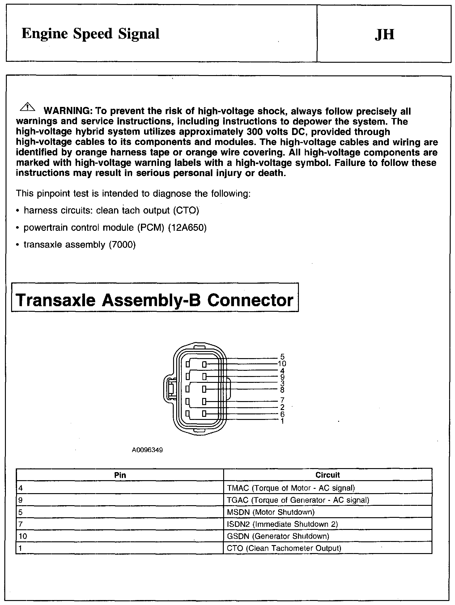 PINPOINT TEST JH: ENGINE SPEED SIGNAL