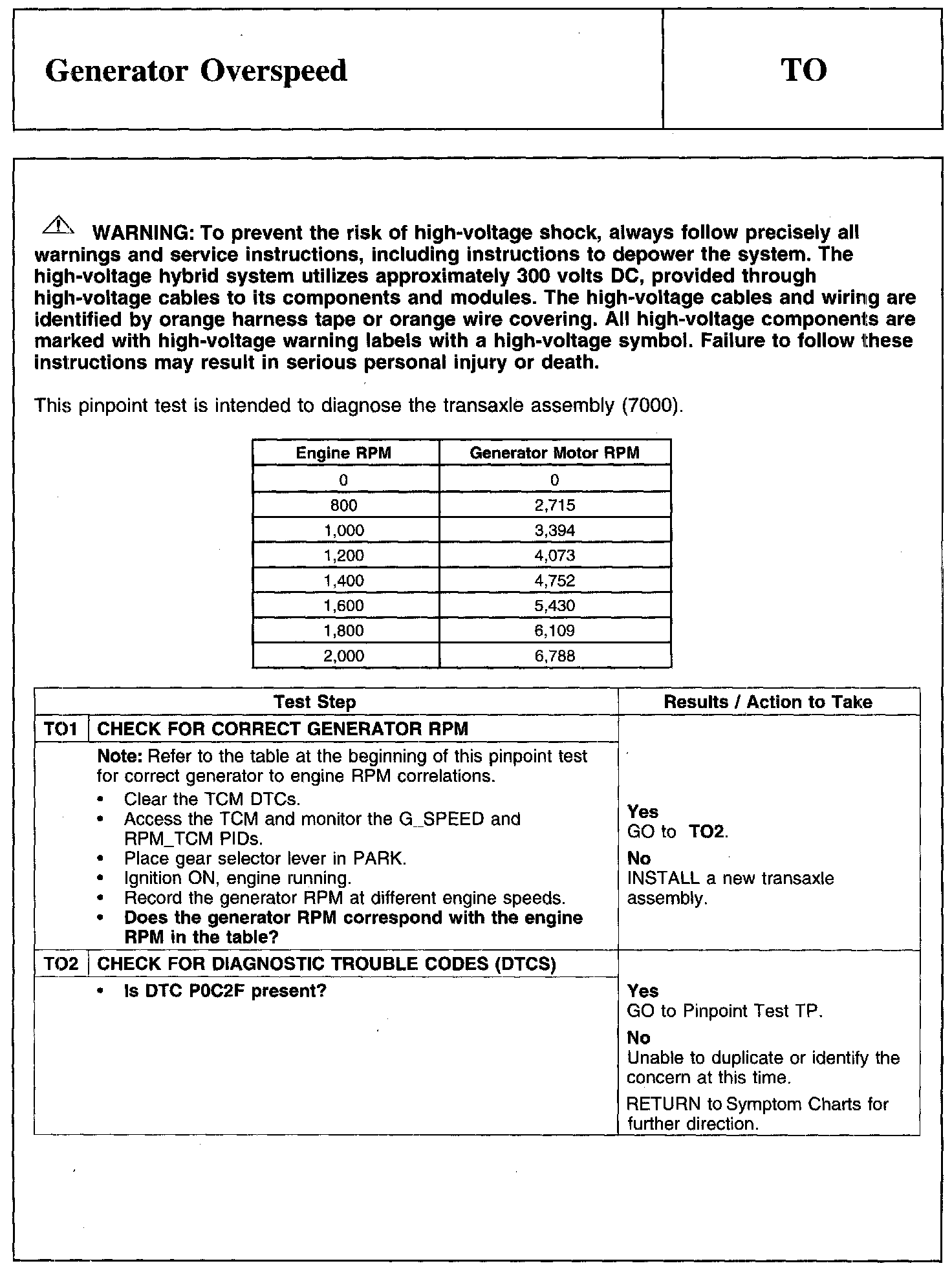 Test TO: Generator Overspeed