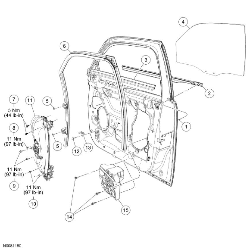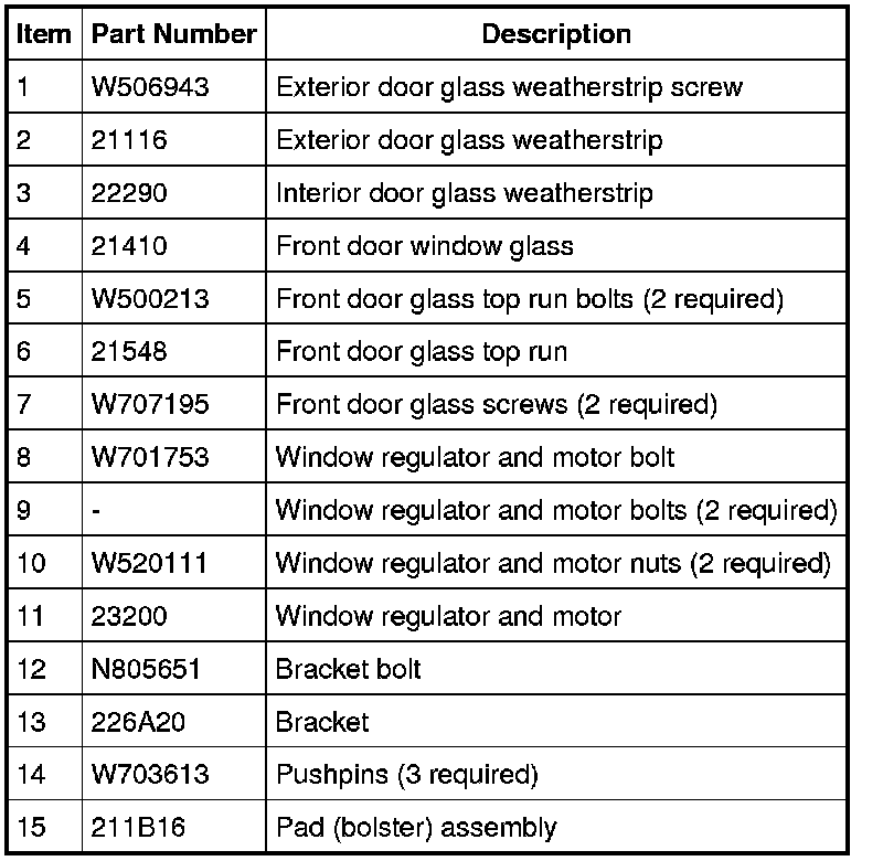 Glass, Frames and Mechanisms - Exploded View, Front Door