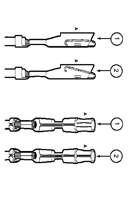- Use heat shrinkable tubes marked with ES-1 (16-22 GA) or ES-2 (10-18 GA) to seat wire splice.