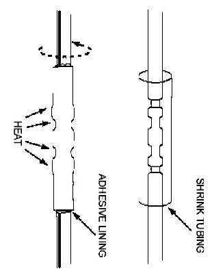 8. Use shielded heat gun to heat the repaired area until adhesive flows Out of both ends of heat shrink tubing.