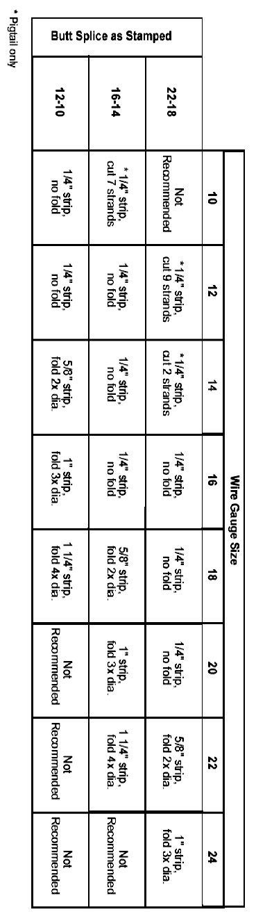 Recommended splicing method - Crimp (For 10-22 AWG Diameter Wire to Like Wire Diameter)