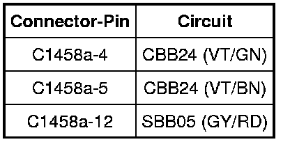 - Measure the resistance between the TCM C1458a-2, circuit GD121 (BK/YE), harness side and ground; and between the TCM C1458a-8, circuit GD121 (BK/YE), harness side and ground.
