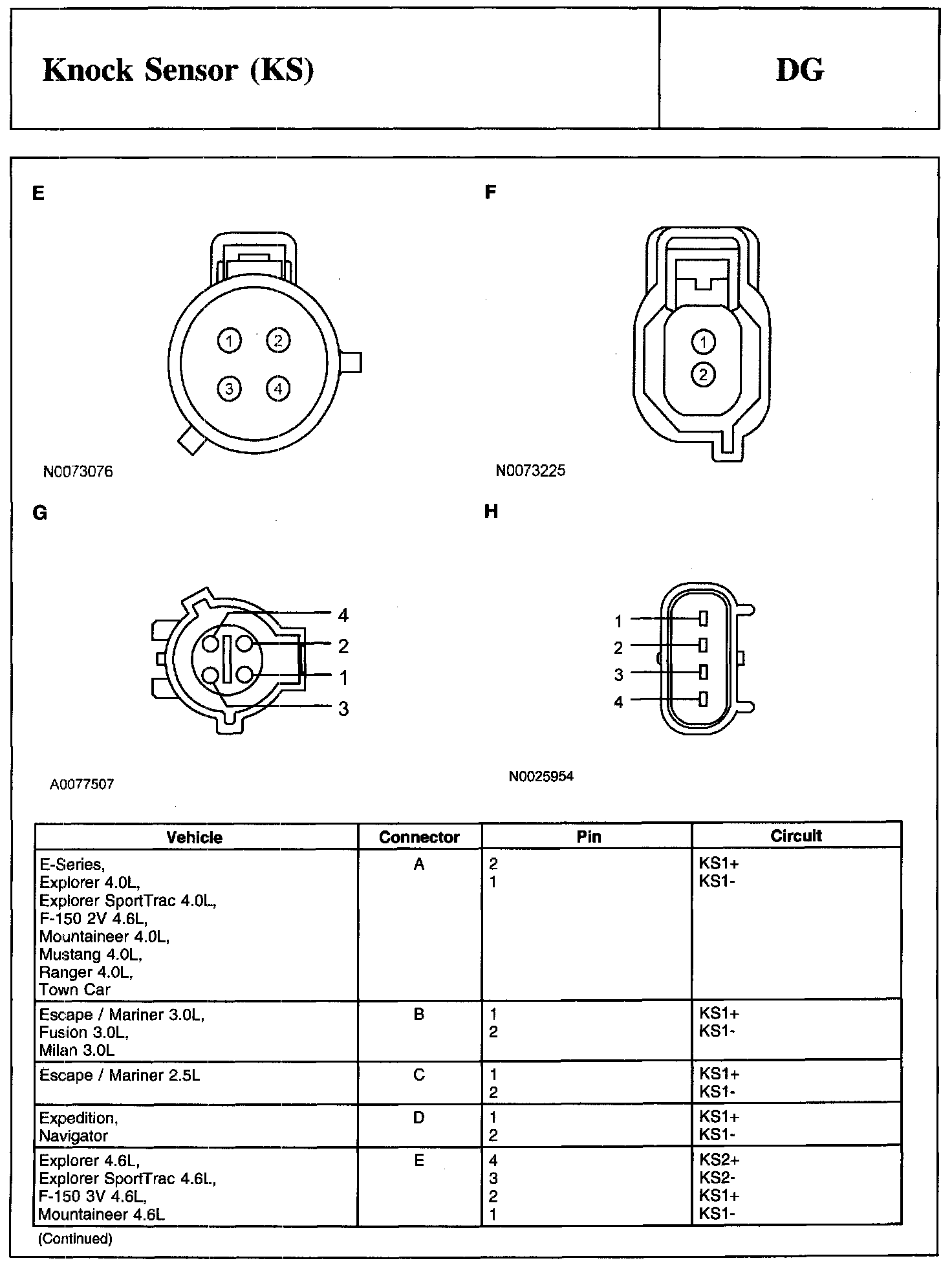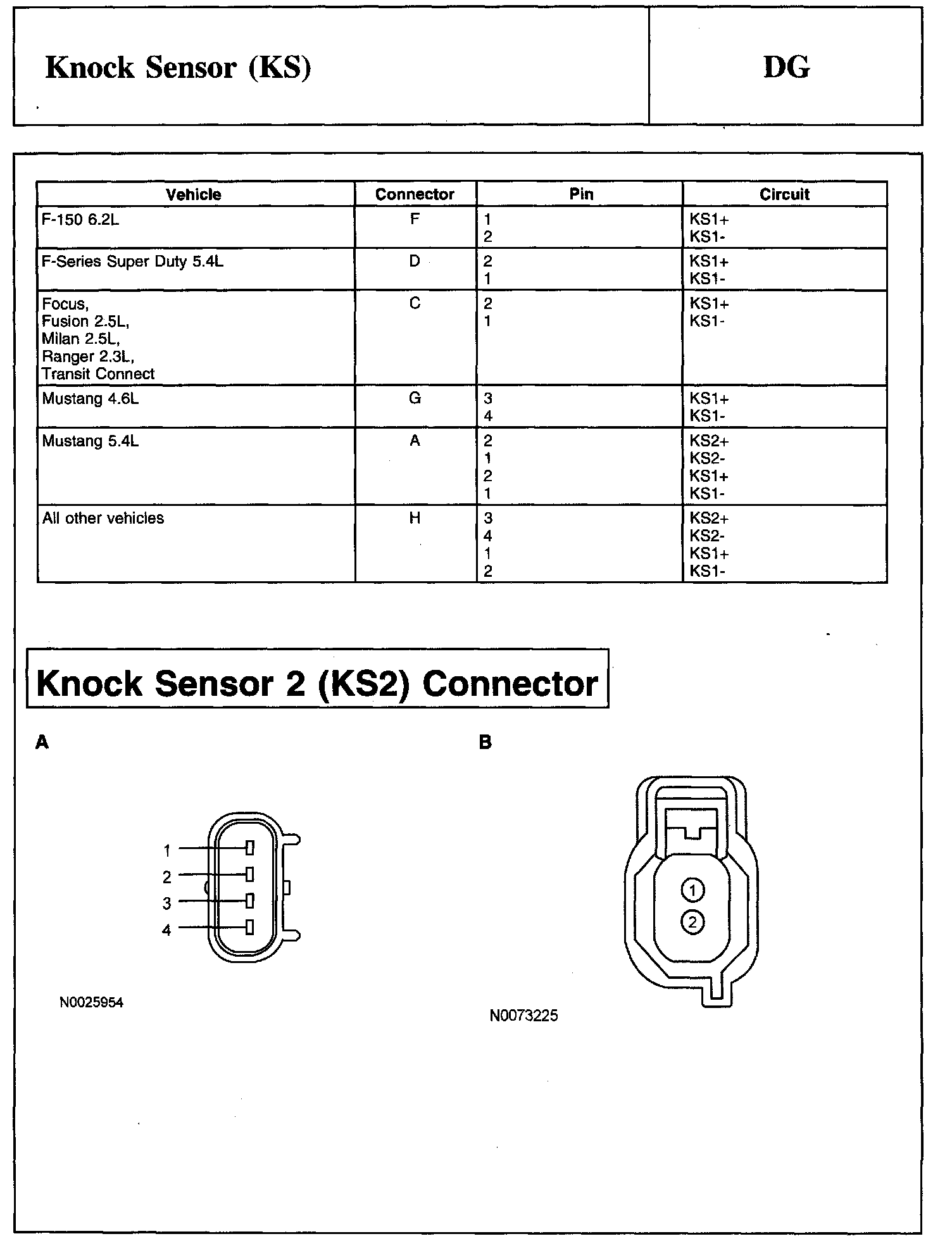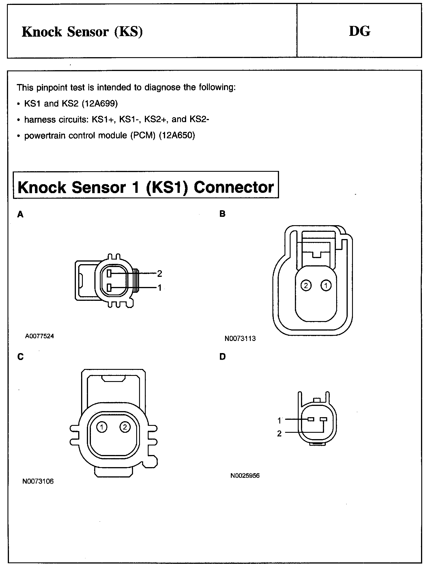 PINPOINT TEST DG: KNOCK SENSOR (KS)Knock Sensor 1 (KS1) Connector: