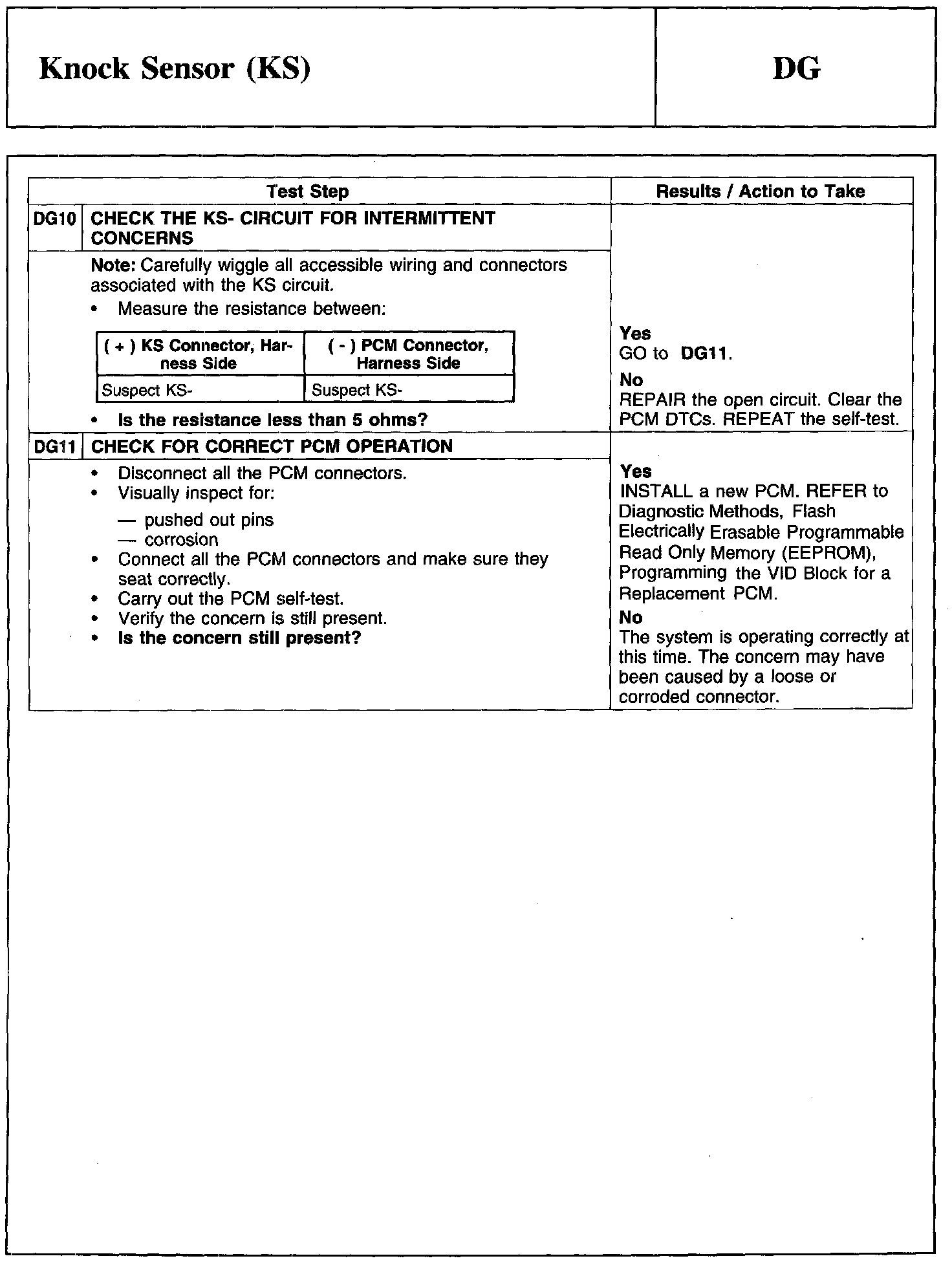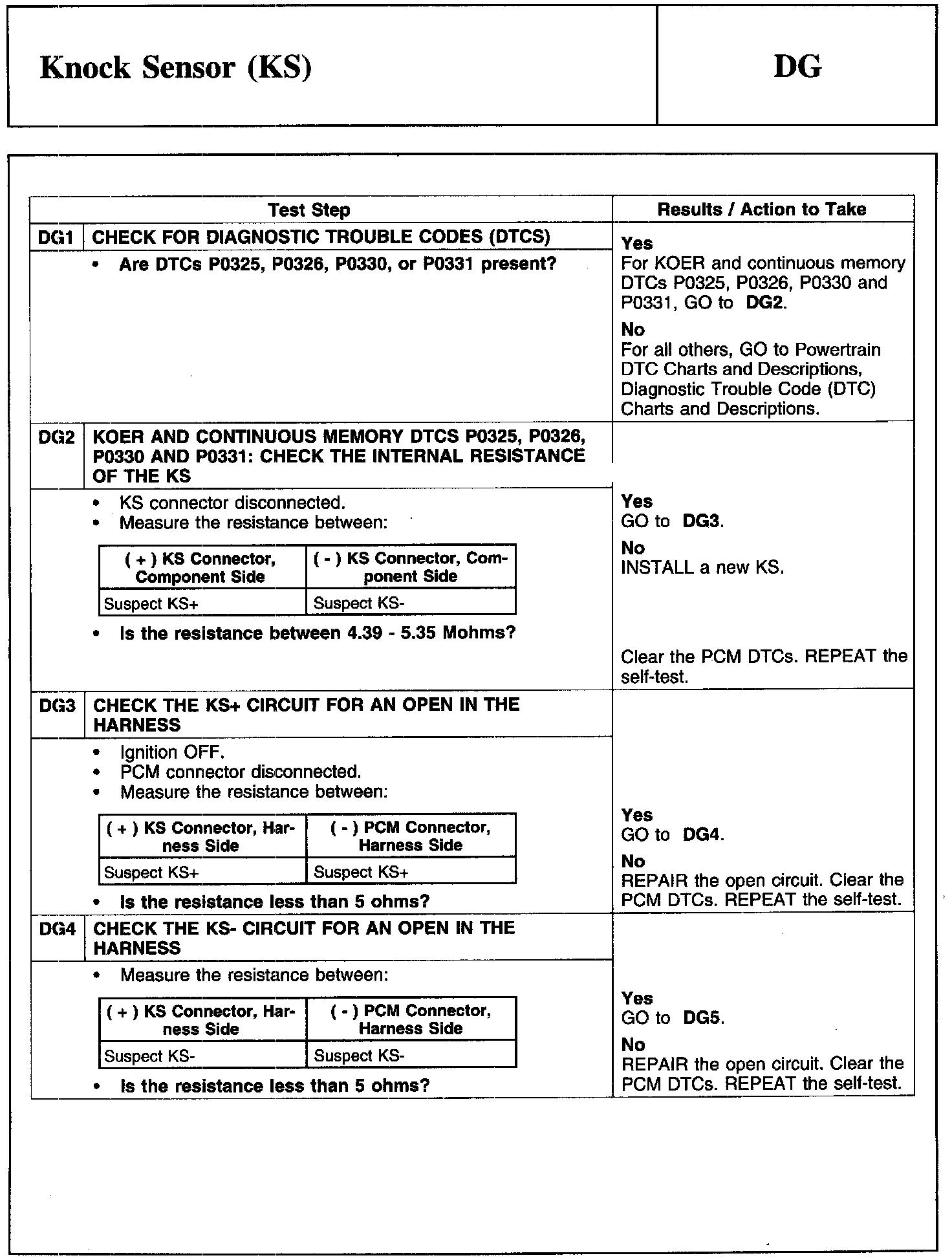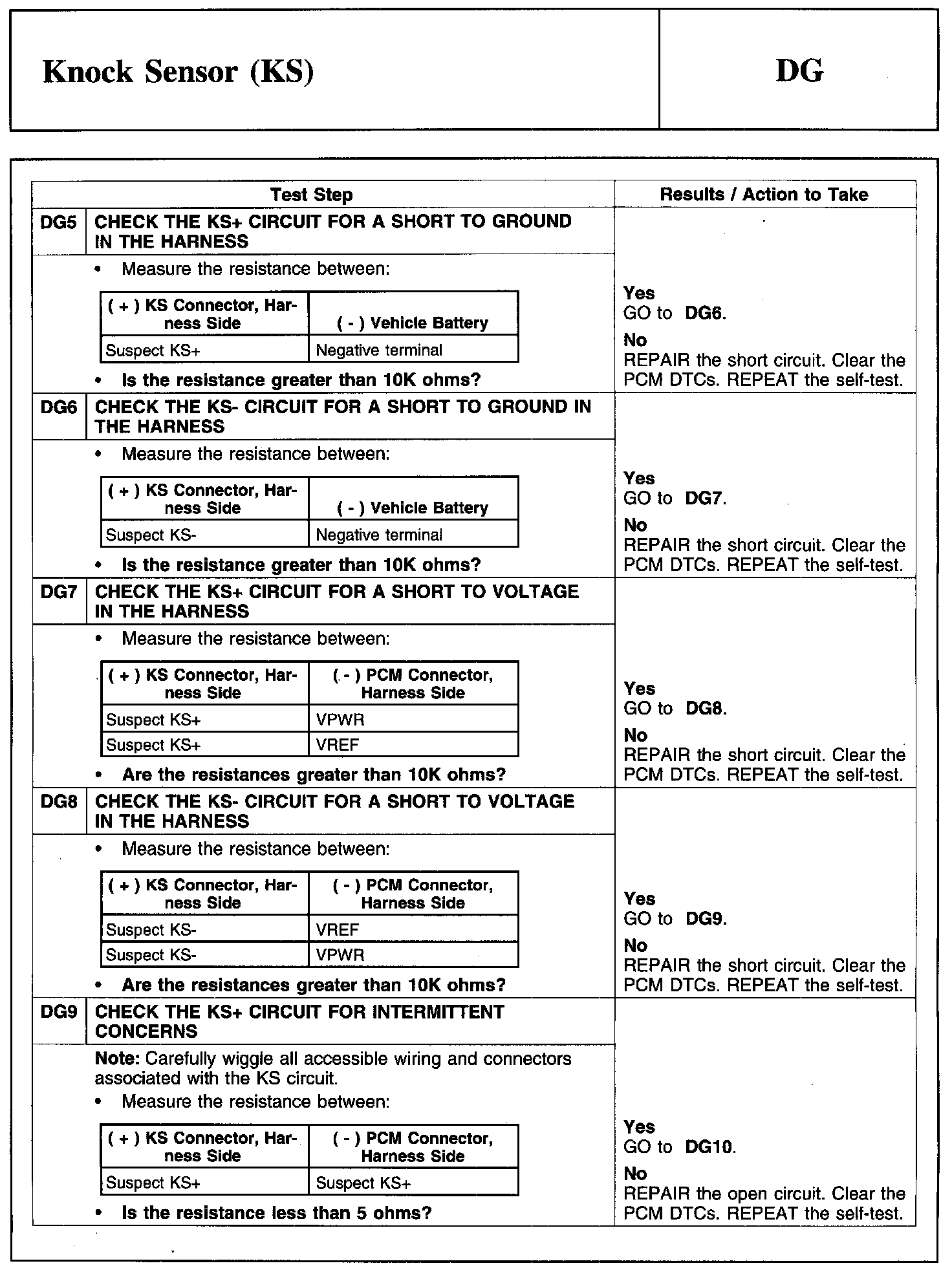 Test DG: Knock Sensor (KS)