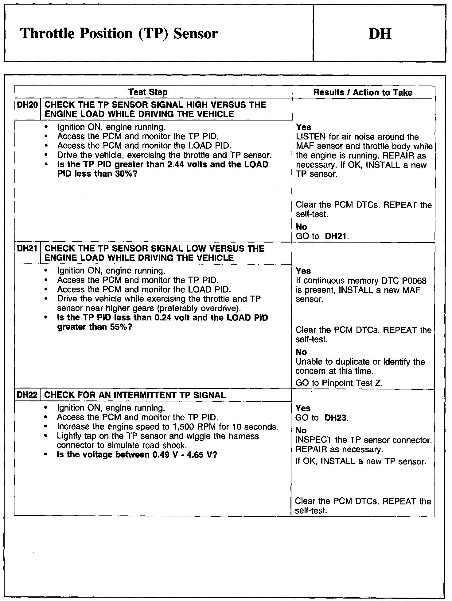 Test DH: Throttle Position (TP) Sensor