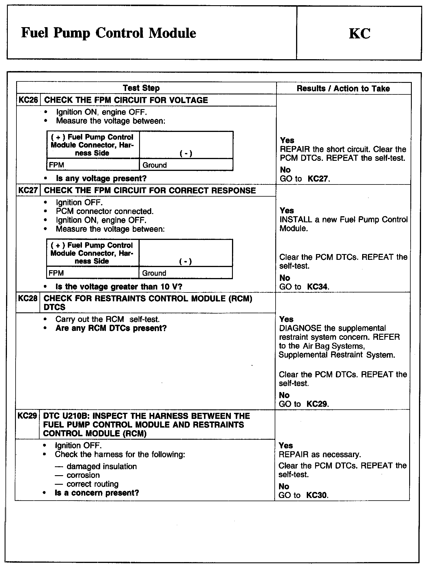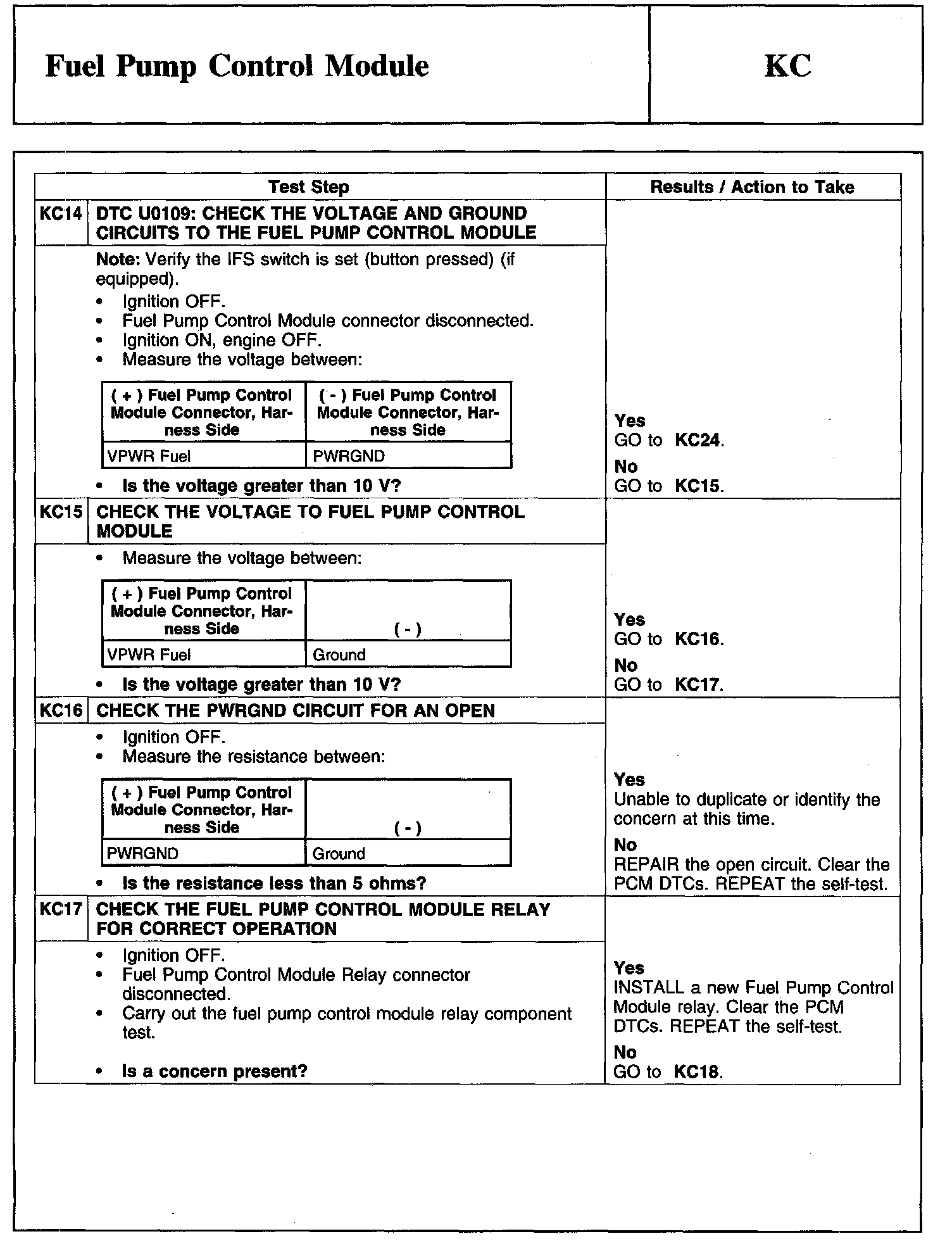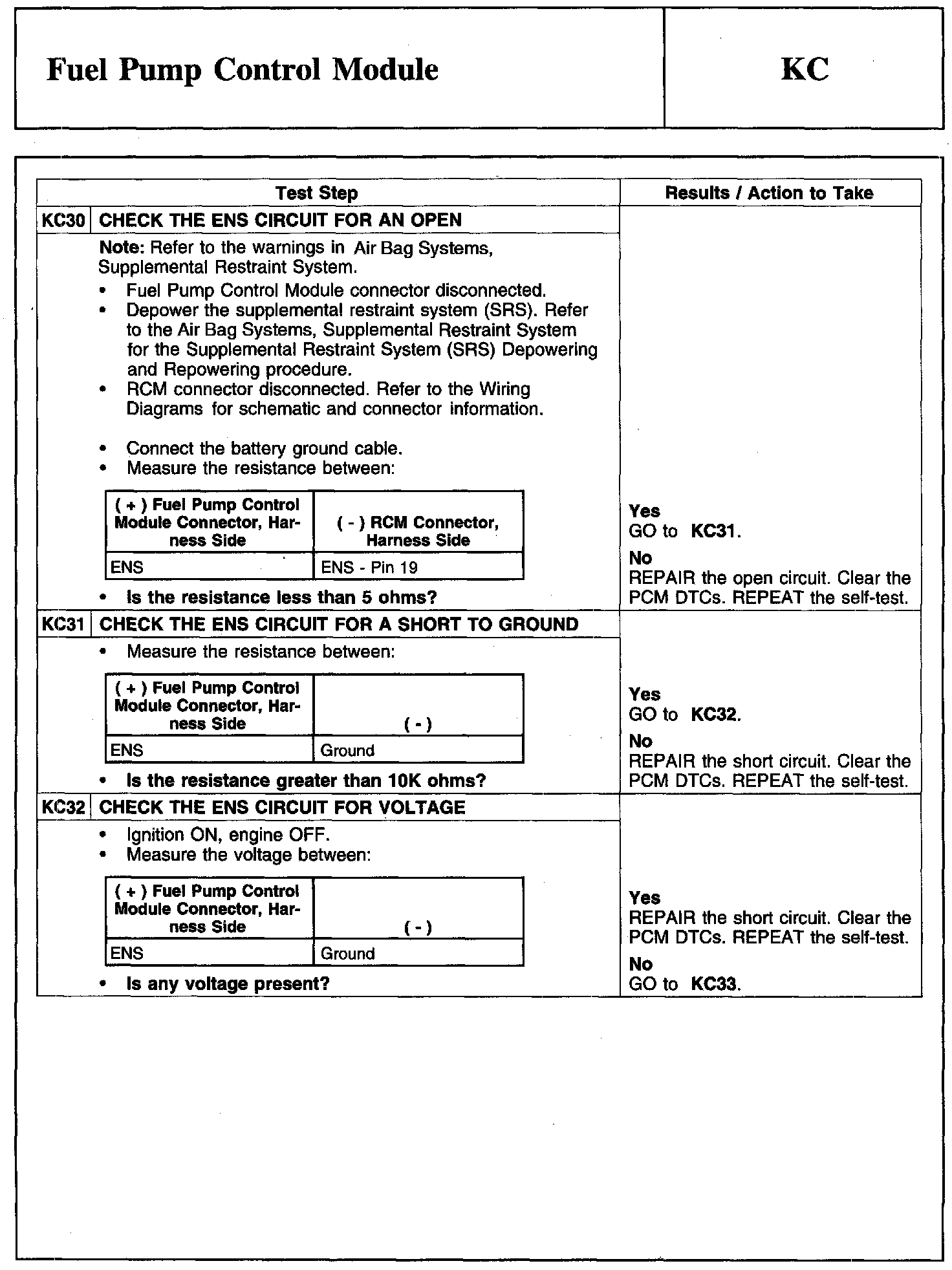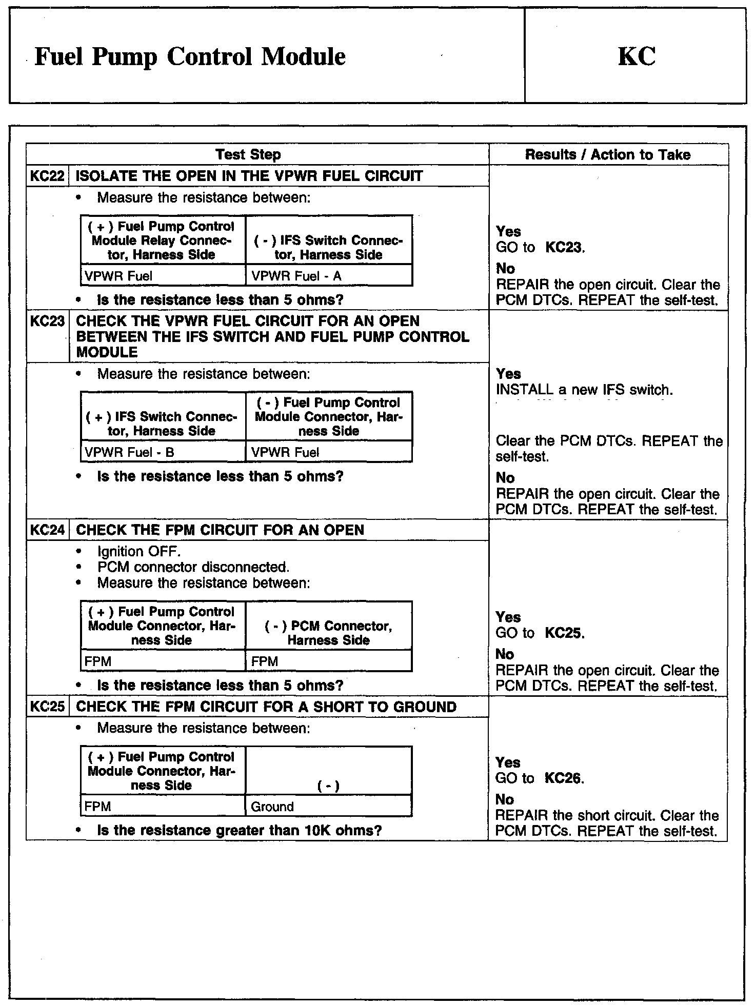 Test KC: Fuel Pump Control Module