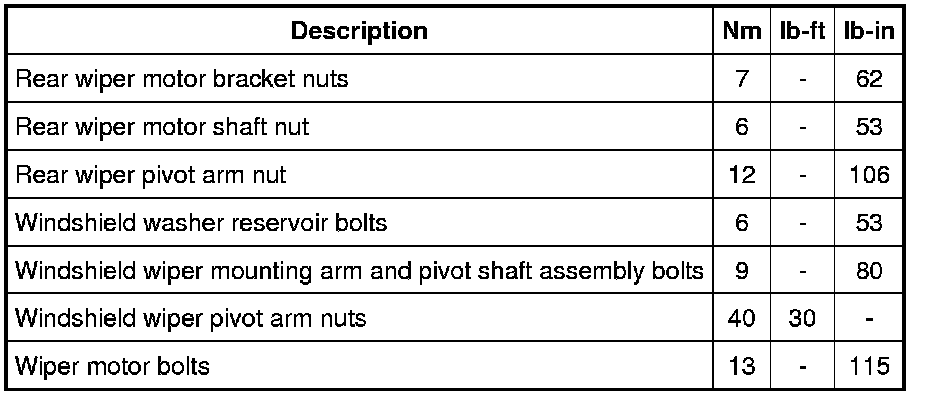 Torque Specifications