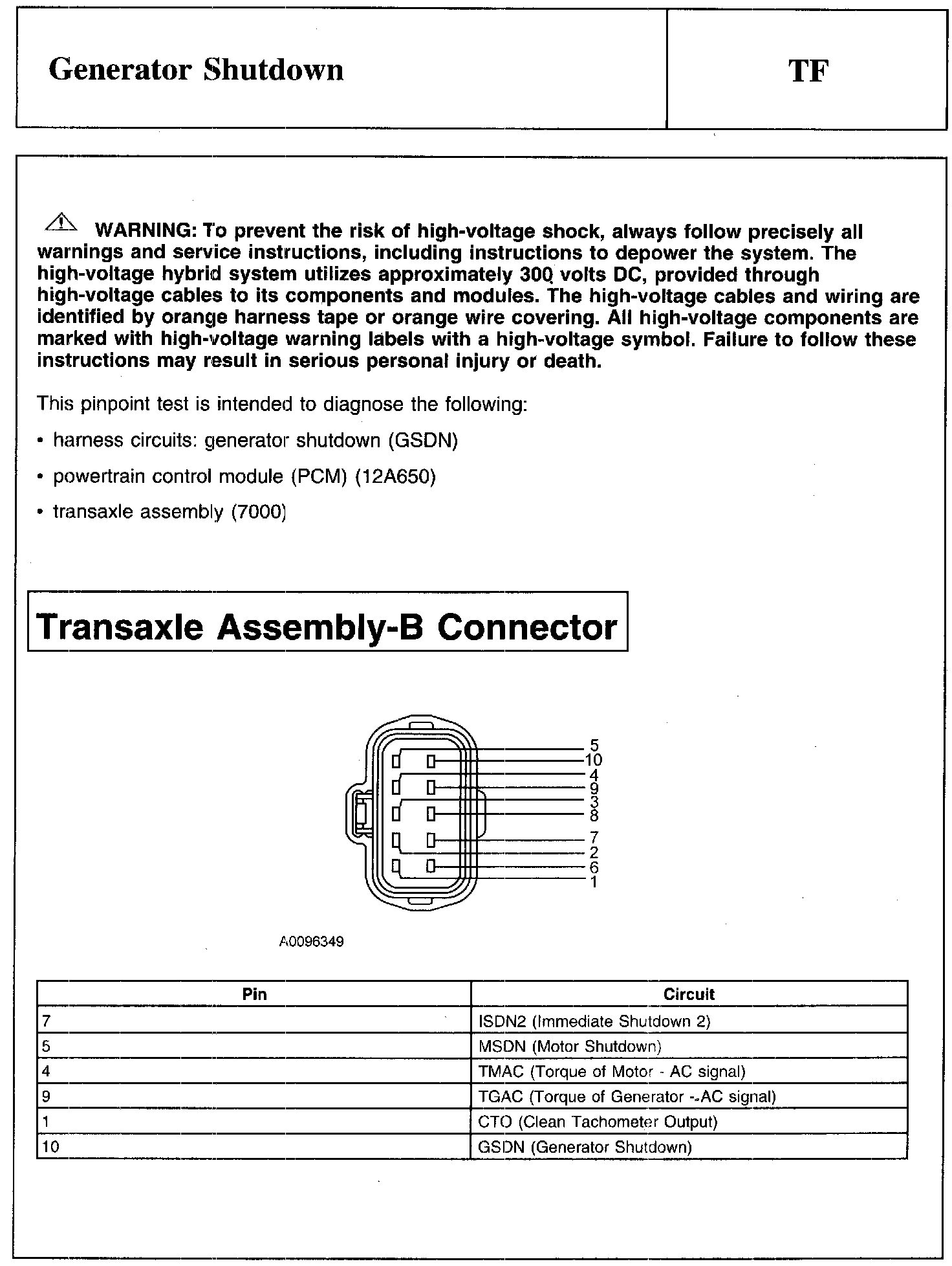 PINPOINT TEST TF: GENERATOR SHUTDOWN
